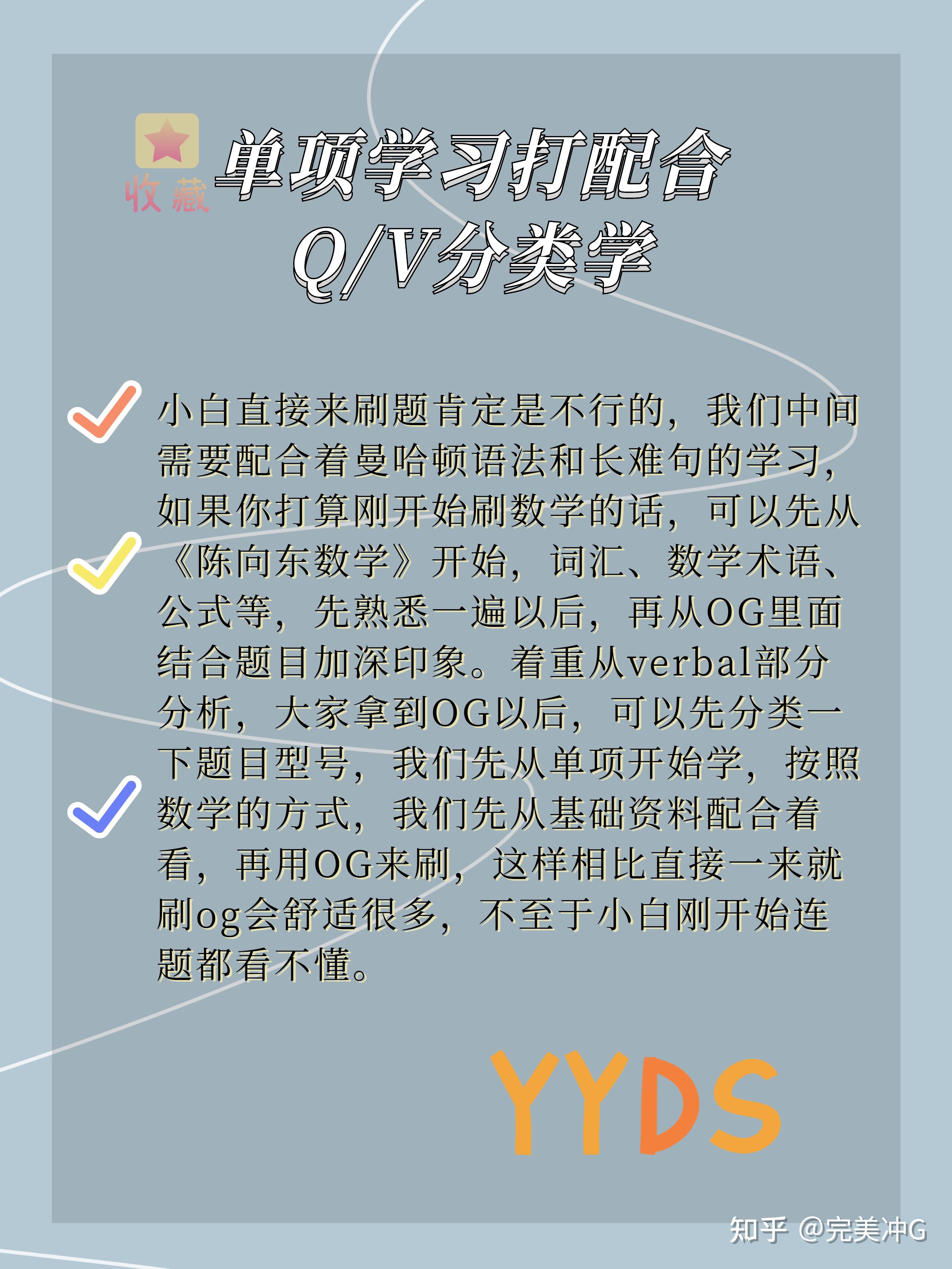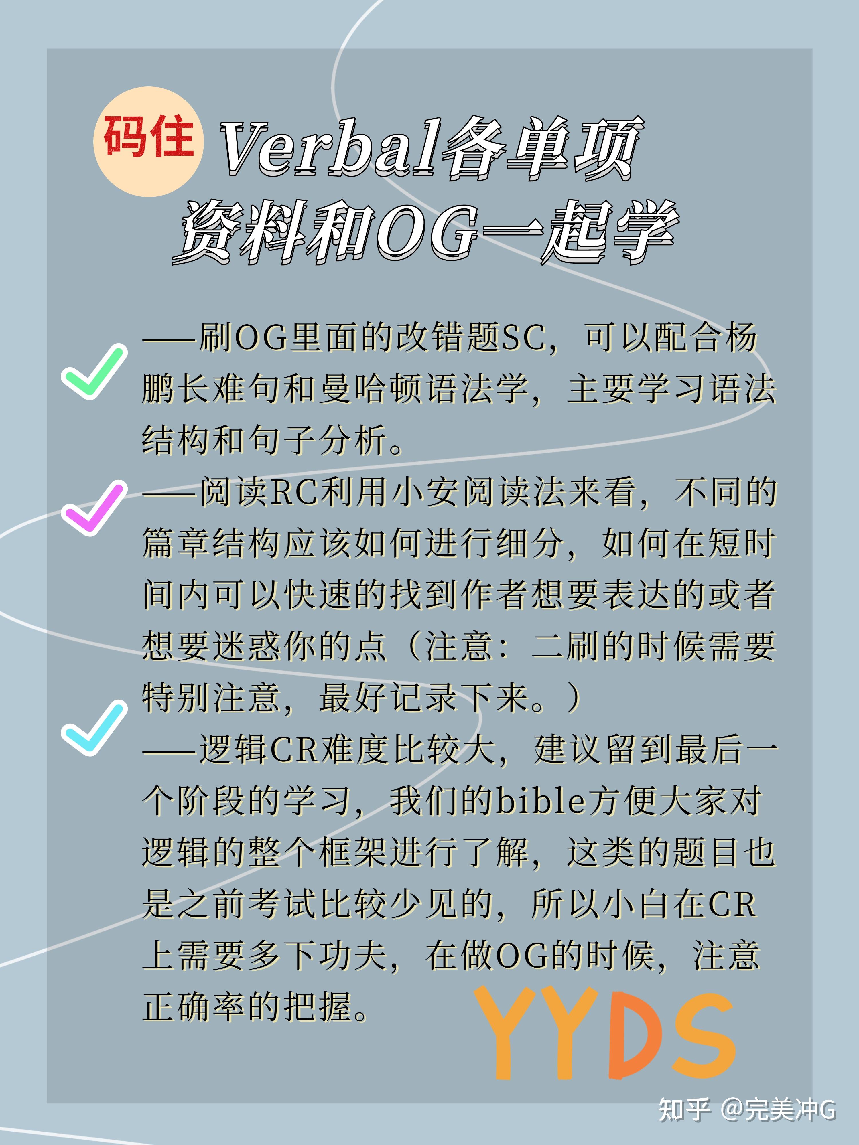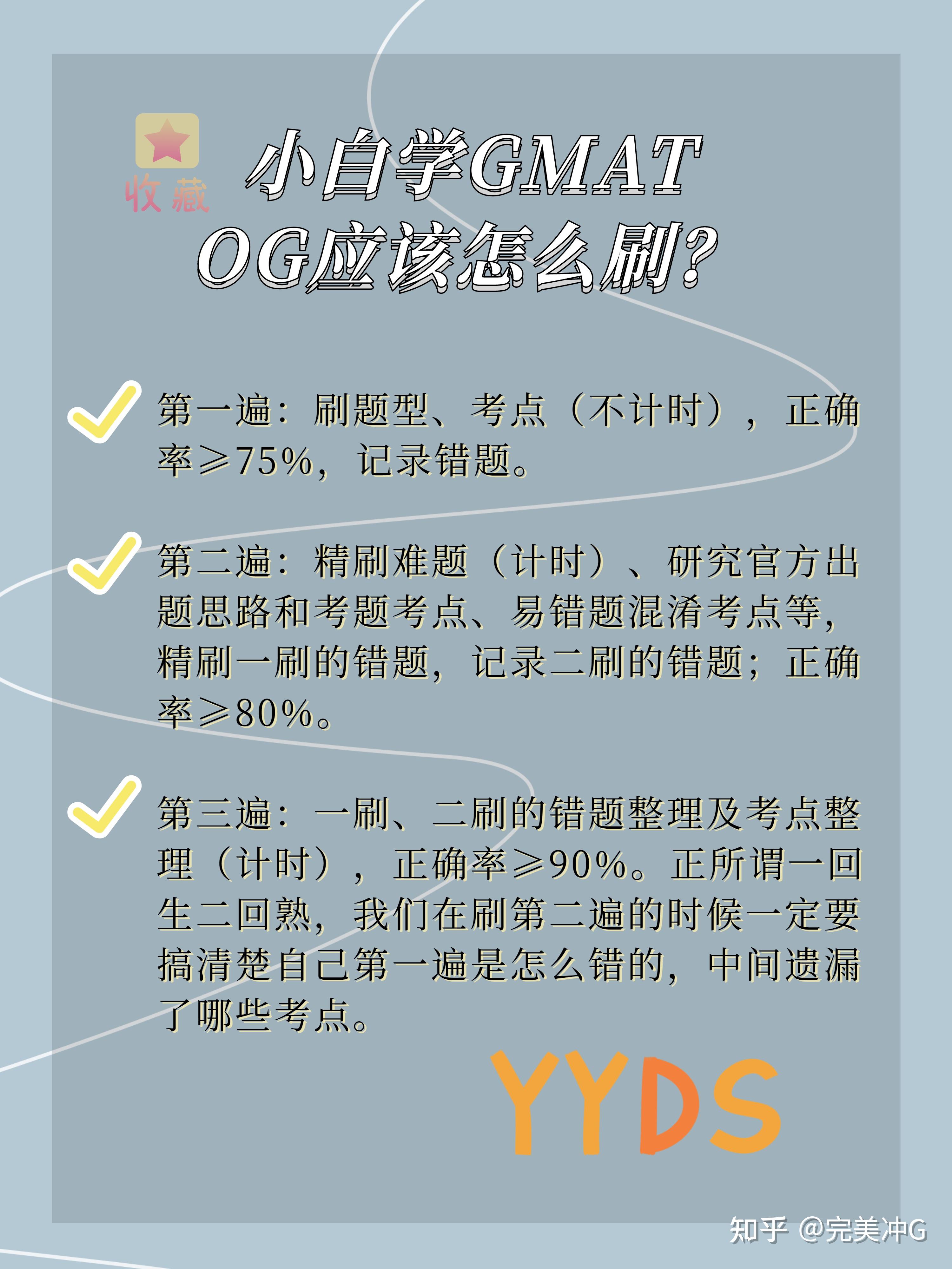小白学习GMAT后官方指南的OG也是真的很可! ——每年都会更新一版,但其实没有新版也可以用旧版,只是蛮多新的内容,所以看新版zzui好,og22目前已经出来一段时间了,下一版2022年出来,(所以说21年出的叫做22版,以此类推) 小白应该应该如何学GMAT OG? OG中的单项应该如何学? —— 总的来说,Og示焚方给的题,所以我们需要多花功夫啃一啃,精品三遍中的每一遍都是精华,也要自己总结精华。 大家加油鸭!!! 23fall申请的宝子可以开始学啦!