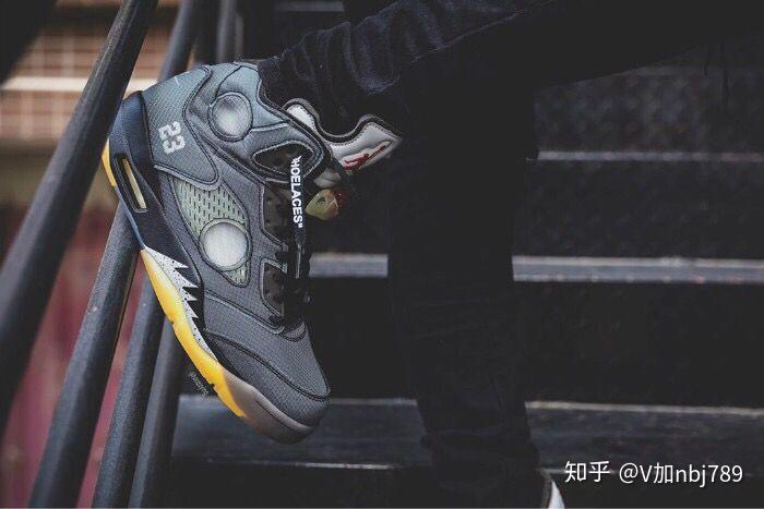 公司级?Air Jordan 5 x off white 联名款 AJ5 ow 乔丹5代篮球鞋/联名灰黄 3M反光鞋