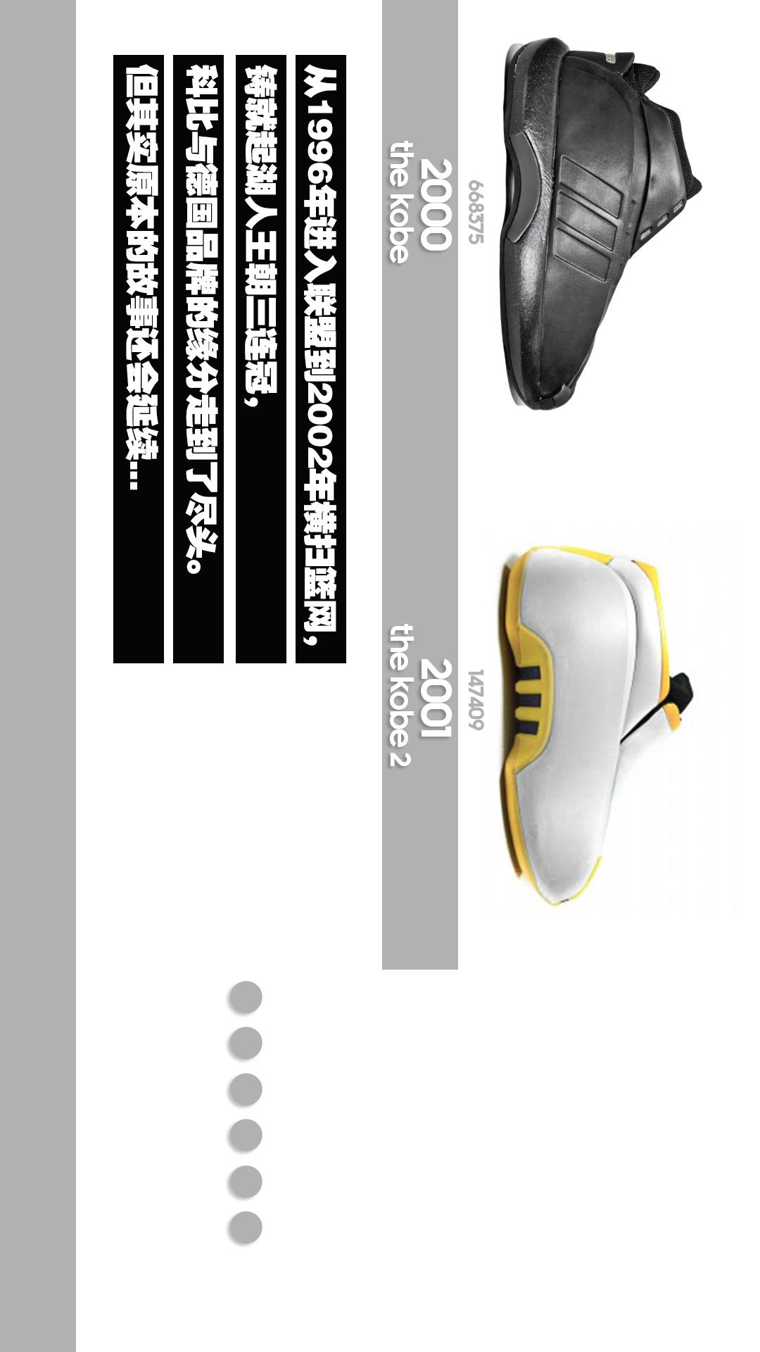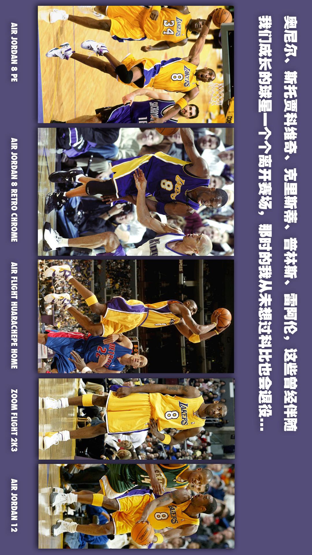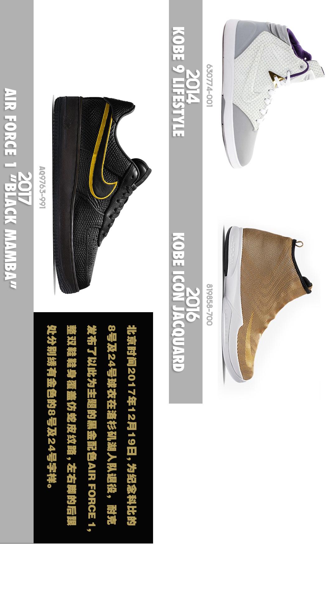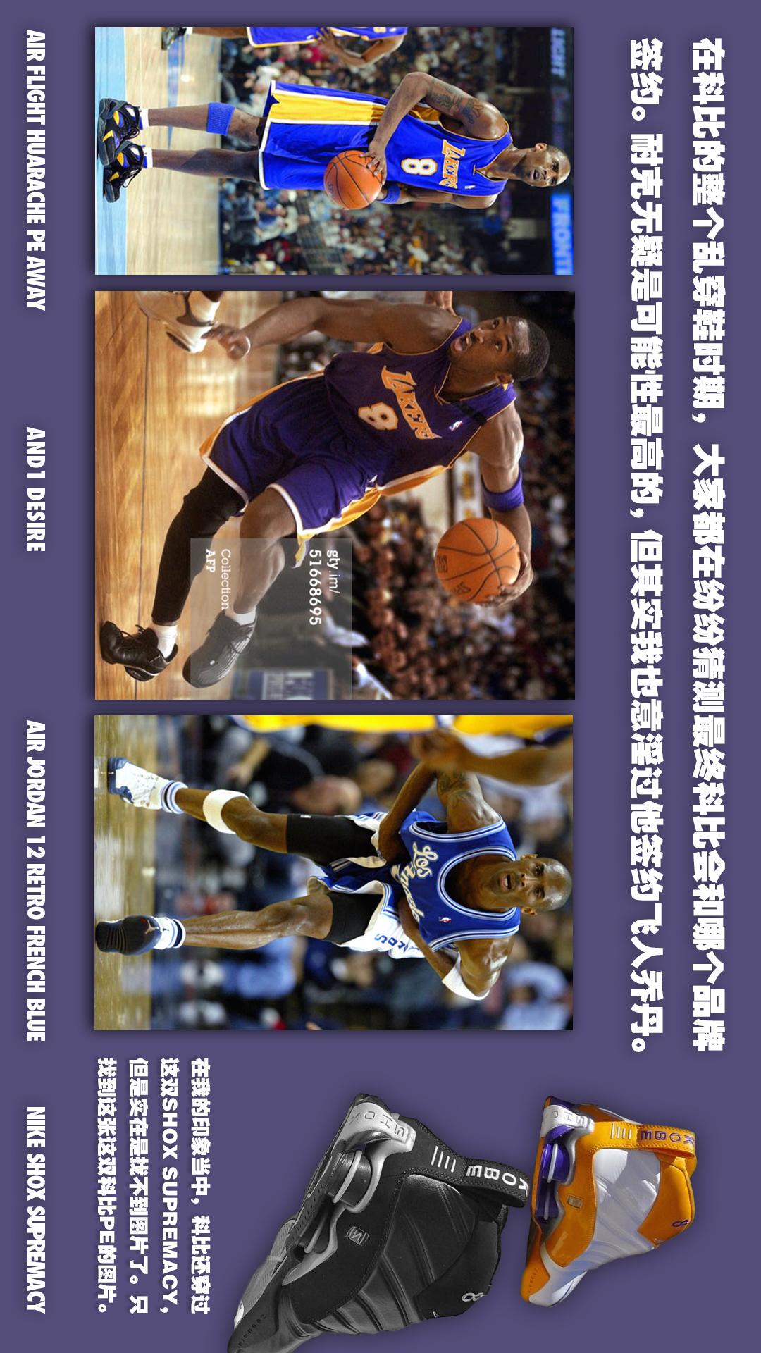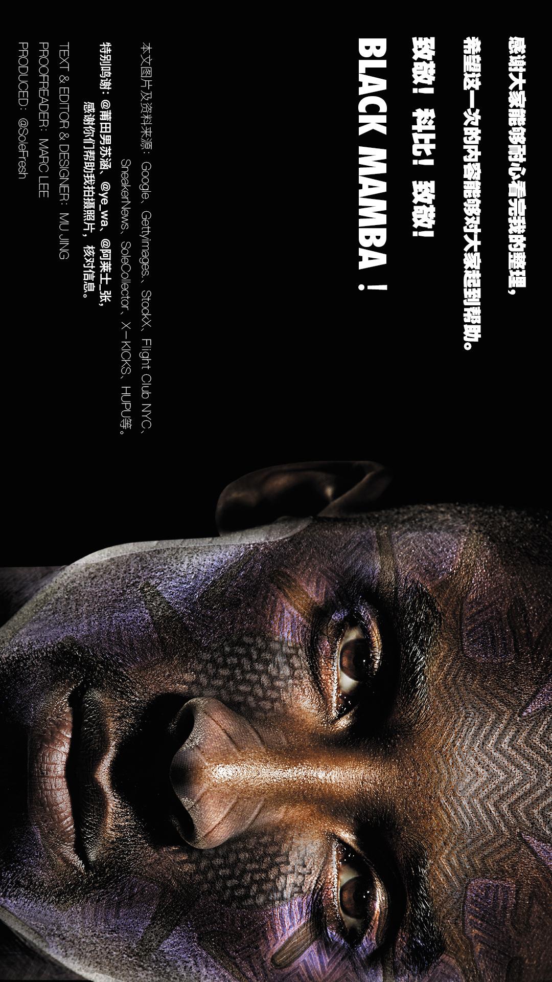 本文首发于我的个人微信公众号:SoleFresh 如要转载请经本人同意,且注明出处。谢谢。 前言1: 因为考虑到大部分朋友都是拿手机浏览,所以图片采用横版。 请大家将手机横着浏览,如有不便,敬请谅解。 图片较多,阅读全文大约需要十分钟。 前言2: 原本是计划在12月19日科比球衣退役那天发布的内容,但因为查询资料所以耽误到12月22日才发布。所以就免去原本在公众号上开头那一小段矫情的文字,直接上干货吧。送给所有喜欢科比,以及喜欢球鞋的朋友们。 前言3: 文中内含81款曾由科比代言的市售版球鞋,每一款所登出的配色我都添加了发售时间及货号。想要收集的朋友可以按货号在搜索引擎搜索。另外还纪录了部分我个人认为十分有意义的未市售Sample版球鞋的介绍。不过例如Hyperdunk 08鞋面加ZK4鞋底这种测试版Sample我并没有加入,主要觉得这种测试版意义不大,另外类似的Sample产品图我还存有很多。如果大家有兴趣,今后我会专门整理一篇介绍科比的开发阶段Sample样品的专题。 OK,不废话了。跟随那些科比曾经拍摄的球鞋广告,来一起回顾这位乔丹时代之后,NBAzzui具影响力的球星的球鞋历程吧。科蜜记得点赞~哈哈~ zzui后的小得瑟一下:那个夏天, 我!见!到!了!科!比! 你!们!羡!慕!吗!? OK,谢谢大家抽时间浏览。 更多关于球鞋系列的整理收录,欢迎关注我的微信公众号:SoleFresh 2018年即将到来,在这里先祝愿大家新年快乐。也鞭策一下自己努力加油,争取在新的一年能让SoleFresh成为一个大家看过都能有一些小收获的球鞋自媒体。