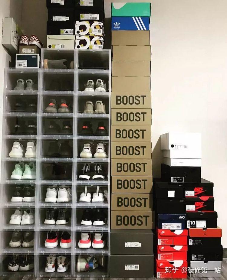 说到买鞋子,对于女生来说,讲究的是品种,各式各样的鞋子都得收着几双。高帮、低帮的靴子啊,各种颜色的帆布休闲鞋啊,坡跟、平底、细根、粗根,而且近几年女生的球鞋也逐渐增多。 男生的鞋子呢,就要显得纯粹而深沉了。品种不重要,数量才重要。因为男人感兴趣的鞋的品种都是高度一致的,那就是——球鞋、球鞋、球鞋、球鞋。 但是有个弊端,如果是翻盖盒,堆叠越来越高的时候,在拿鞋的过程很容易就会将鞋盒弄乱。 可以选择透明鞋盒,防尘之余还能把藏品都秀出来。 在关于球鞋保存方面,透明的防尘鞋盒对于球鞋保护相对较多,而且透明感设计的摆放,给人视觉冲击很强,一目了然。 整体堆放起来简洁美观,将球鞋收藏整理好自己欣赏或给客人羡慕一番都是zzui好的选择。 要是砌满一墙,更是壮观。 ''白头鞋老代表'' 这里就不得不提到两个爱鞋如命的例子——白敬亭和罗志祥。 白敬亭,江湖人称“怀柔鞋王”,他家里的鞋柜一角摆出来(是的,只是角,角落的角),你差点以为进入了仓库。真不知道如果没有搜索引擎,怎么能精确找到自己要穿的那双鞋。 采用的是这种透明鞋盒的收纳鞋柜,可以清楚的看到每一双鞋。小白的鞋子真的多到能开店,不过人家买来也不一定穿啊,可能只是抱着睡觉...... 据说,罗志祥家里已经有五六千双鞋了,这一溜展示下来大概能占掉半季的播放时长吧… 对于这种财大气粗的“囤鞋”者,直接就把家打造成像外面的shopping mall展示一样,也是很酷炫。 ''小空间的鞋子巧收纳'' 如果没有上面那些空间,又想不断买买买。就需要有点小心机啦,安利个日本鞋履收纳神器来帮你。 (1)鞋子分层置放架 简单轻松,把鞋子都藏起来两只变一只,两双变一双,收纳空间大扩容! 看似简单,但非常实用,效果显而易见。 也有一对装的,好事可以成双。 (2)1个鞋盒收3双鞋 家里鞋子太多太乱的朋友看过来,用旧鞋盒也能解决鞋子收纳的木封! 准备一个鞋盒,画出鞋盒侧边的对角线,用美工刀沿线割开或者用剪刀剪开,接着把切割开的部分与鞋盒分离。 将切割出来的部分与鞋盒底对齐,用热熔胶或者透明胶固定好。 这样简单改造过的鞋盒,一次能收纳三双鞋,一下帮你省出不少空间。 把切割下来的鞋盒放到鞋架上,上下能各放一双鞋,瞬间增大利用空间,鞋架放满了的赶快试试! 平常我们都是把鞋子横着放,浪费了很多竖向的空间,其实换个思路,把平底的鞋子竖着放,再多的鞋子都能装得下! 只要家里的鞋柜格子的高度可以竖着放下一双鞋,就可以运用这个方法了~ 准备一些盒子,比如快递盒,或者文件盒,都可以用来收纳鞋子。原本两双鞋的面积,竖起来就能放四双鞋子,而且拿取很方便。 文件盒的价格很美丽,2、3块钱一个,却能让你省出一倍的空间,让你家无形中又多了一个大鞋柜! 如果你更注重美观,可以去买专用的鞋子挂钩、挂鞋架。挂鞋架+伸缩杆,两种方法收纳结合起来,紧密排列,一小块空间都能收下近10双鞋! 地方大,有更好的展示效果,但小地方也是可以收纳的很好的。 记得关注哟,^_^ 我是装修第一站站主,做过地产,每年跑800多个楼盘,知道住户所需;做过装修,懂得业内有多少“坑”,现在,我是自媒体,用简单的文字,把我知道的省钱绝招一一告诉你! zzui后:此文由装修第一站原创,未经授权不得转发于任何平台,违者必究! 备注:本文图片来源网络,如有侵权,请联系删除。 码了点字,给大家分享下 关注一下“装修第一站” 到后台回复“知乎”我拉你去加入全国装修VIP交流群 装修水深,我们带您乘风破浪!! 安排~ 生活不易,觉得我写的东西可以的话记得点赞哦 您的的支持就是对我zzui大的鼓励~