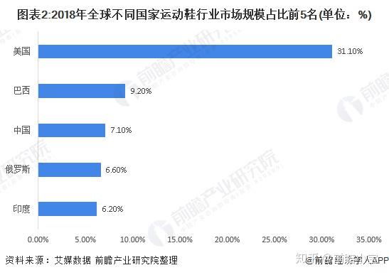 全球运动鞋行业市场规模扩张迅速 衣食住行相关花费长期以来在世界各国居民消费总支出中占据绝大部分,随着世界整体经济稳步发展,多国家GDP增长率持续走高,居民消费水平逐年增加,在衣物鞋帽等方面花费亦有所增加,而近年人们对时尚关注度的提高使得全球运动鞋市场进一步发展。 2011-2018年,全球运动鞋市场规模不断扩大且增长率大致呈上升态势。2018年全球运动鞋市场规模高达1465亿美元,较2011年增长723亿美元。2019年,全球运动鞋市场规模预计维持增长态势,初步估计将突破1600亿美元。现阶段,全球运动鞋市场规模较大且有望持续高速扩张。 全球运动鞋行业发展区域性明显 如今全球不同国家运动鞋市场发展状况差异较大。2018年全球运动鞋市场份额占比zzui高的5个国家为美国、巴西、中国、俄罗斯、印度,其中美国运动鞋市场销售额在世界运动鞋销售总额中占比高达31.1%,排名第一,比排名第二的巴西所占市场份额高出约20个百分点。可见尽管目前全球运动鞋市场整体发展态势良好,但不同国家之间运动鞋市场规模仍存在较大差距,美国展现出较高的垄断性。 ——运动鞋市场与国家人口规模、经济水平具有一定相关性 衣物以及鞋子等物品属于居民日常生活必需用品,虽然居民对于日常消费分配可能不同,但对于衣物以及鞋子的开销必不可少,而运动鞋作为鞋类中较为常见的品类,任何年龄层的男性与女性均可使用,其需求量与国家人口规模大致呈正比关系。因此国家人口规模应为影响其运动鞋市场发展的一个重要因素。人口数量众多的国家对于鞋子等出行必备物品的需求量较大,人口规模较小的国家对于运动鞋需求量则相对较小。 此外,国家经济水平也应为其运动鞋市场发展的影响因素之一。经济越发达的国家,居民人均可支配收入较高,在衣物鞋子等物品上的消费金额也相应越多。因此即使部分国家人口规模不处于高水平,但由于其经济发展迅速,居民消费水平较高,购买鞋子衣物等商品时可接受的商品售价较高,人均运动鞋拥有量也较多,其运动鞋市场规模也可维持在较高水平。 根据相关数据,当前人口规模与GDP总量排名均位居世界前十位的有4个国家:美国、中国、印度与巴西,这四个国家的运动鞋市场份额排名均在世界前5位。而全球运动鞋市场份额同样排名前5位的俄罗斯,其GDP水平虽未处于世界前10的水平,但其排名也较高,位于世界第12位。 世界龙头企业垄断性明显 目前全球运动鞋品牌众多,但大部分市场份额仍被几个龙头企业占据,其他品牌销售额与这些龙头企业存在较大差距。2018年,世界知名运动品牌耐克与阿迪达斯的销售额均在千亿元级别,而市场份额排名第三的彪马营业收入就降为了为346亿元,还未超过500亿元,中国行业领先运动品牌如安踏、李宁等营业收入与一系列世界知名品牌仍存在一定差距。由此可见,虽然现阶段全球运动鞋市场高速扩张,发展潜力巨大,但由于龙头企业垄断性较高,真正能从中获取较大利益的品牌数量并不多。 更多深度行业分析尽在【前瞻经济学人APP】,还可以与500+经济学家/资深行业研究员交流互动,10000+行业报告免费阅读。