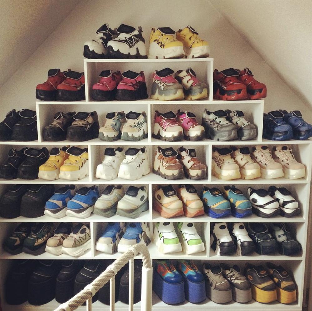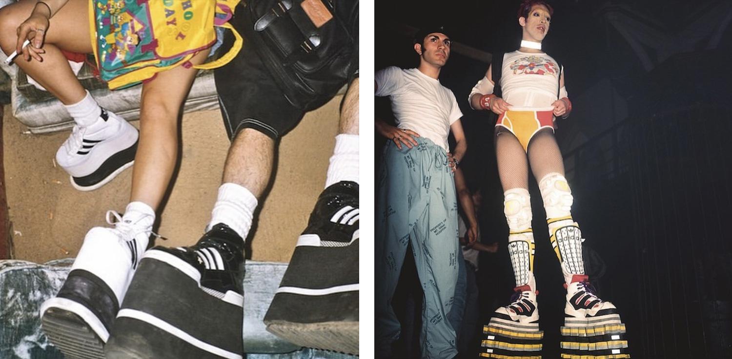 Triple S 似乎游走 Platform 和 Chunky Sneaker 之间,它的成功或许要归功于讨巧的设计。可是近年还有不少例子在不断证明着 Platform Sneaker 的普及,从 Nike、Converse 等等运动品牌的个别系列里可以略窥一二。另外,还有两个来自英国的典型厚底鞋品牌再一次异军突起:SWEAR London 和 Buffalo London。 其中 SWEAR London 甚至有着 “死灰复燃” 的迹象,借着和 VETEMENTS 的合作以后(2017 年)便开始重新运营品牌,陆续发出和 Gypsy Sport 等品牌的联名合作,并在时尚圈依靠一众 Fashion Icon 和 Cool Kids 再次慢慢站稳脚跟。 曾经贵为 “Spice Girls 御用” 的 Buffalo Logon 竟然也不约而同地在差不多的时间段发力,在社交网络上开始展开宣传攻势。提到 Spice Girls 这个很有年代感的名字,一下子就把人带到上世纪末的回忆里面去了(虽然她们zzui近又重组开始活动了)… 这个 90 年代zzui火的女子组合开创了一个新的时代,专辑销量无人能及,火遍全球。除了在音乐上的成绩之外,她们的穿着也在当时掀起了一阵厚底鞋的潮流。如果你现在在 Google 上输入 Spice Girls 的关键字,智能关联的搜索栏里也会出现 Platform 这样的词,可想而知两者之间的代表性。 不过zzui巧合的是,两个品牌其实都曾在 90 年代中后期到 21 世纪初之前迎来过短暂的人气爆发,刚刚好,这段时期又被一个 “专有名词” 所概括着 – Y2K。 至于为什么会出现这样的 Bug、后来又如何解决… 这样的细节就不给大家一一解释了。提起 “千年虫” 突然受到关注的问题,也只为交代一个时代背景:科技生活即将在新的千年全面到来,这牵动着地球上大部分的人、事、物。 伴随着 Y2K 一起诞生的当然不只 “千年虫”,还有一种同样以此为名的 Y2K 美学主义,所代表的就是 90 年代末至 21 世纪初的标志性审美。现在用一句话来概括的话,Y2K 美学(以下简称 Y2K)的诞生就是基于人们对于未来的憧憬,源自当时人们对于高科技的想象和刻画。 Y2K 渗透到各方各面的事物之上,当然也包括时尚领域。研究专家 Evan Collins 对当时的穿着美学进行了一番评价:“未来是紧身皮裤,银色眼影,闪亮服装,Oakley 墨镜,渐变和电子产品。” 只要是你能想到的任何东西,在 2000 年前后诞生的几乎都必须接受 Y2K 的洗礼。在看过上方的图片之后,我想你对于这种美学大概是什么样的东西应该也能有一个初步的了解。 对于 Y2K 来说,科技感是其核心。这个核心来自于当时人们对于未来科技的畅想。在冷战结束、经济逐渐复苏的社会环境之下,伴随着 90 年代各种狂欢的锐舞派对,体现出人们对和平繁荣、及时行乐的态度产生了一种无限循环的美好幻想。随着千禧年的靠近,“未来世界” 似乎也变得越来越触手可及,全人类都将欣欣向荣地迎接千禧年的到来。或许如此,代表这种氛围的 Iridescence 色系(中文应该叫幻彩?)便频繁地出现在 Y2K 之中。 在这样的时代背景和社会思潮之下,“乐观” 和 “科技” 这两个元素所代表的,正是 Y2K 给予当代人带来的精神寄托。 好景不长,千禧年前建立的美好憧憬在刚刚踏入 21 世纪之后便瞬间崩解。9/11 袭击、美国炭疽事件等恐怖袭击在不断发生, 色彩斑斓的幻想、无尽狂欢的锐舞派对在一夜之间成为过去式,Y2K 渐渐退出舞台,变成历史。 所幸的是,这个独特的美学阶段被有心人所记载。Evan Collins 在 Tumblr、Twitter、Facebook、Instagram 等众多平台都建立了 Y2K Aesthetic (Y2K 美学)交流群组,分享当时的一些设计、音乐、电影,让 Y2K 美学的粉丝们有了一个聚集之地。 刚才提到的 SWEAR 和 Buffalo 便正是处于这样的千禧年时代。从历史背景中回到今天,随着近年 SWEAR 和 Buffalo 的再度活跃,我们也可以从运动鞋领域中窥探到背后的这股 Y2K 因子正再次发挥着用作力。 随着科技发展越来越成熟,如今虚拟渲染在技术上的突破已经能对未来世界以真实观感进行刻画,人们脑海里所产生的 “未来画面” 已能被肉眼所彻底接受,这点从如今逼真的电影中就能有所体现。这样回看起来的话,Y2K 似乎是具有一种由技术缺陷、虚实落差而产生的独特未来观感。毕竟诞生于 20 多年前,其在审美意识形态上的表达都必须植根于当时拥有的技术之上。 对于经历过那个时代的人来说,Y2K 的众多元素也会勾起他们对于过去的回忆。当你看到 SWEAR 、Buffalo 甚至连 Converse 都推出 Platfom Sneaker 时 ,你很难不回忆起 Spice Girls 曾经叱咤歌坛的样子;当你看到 Iridescence 色系的 PVC 元素出现在各大品牌的设计当中,也会想到曾几何时周边的一切设计都是如此… 这种简单的道理,却是zzui吸引人的关键。 以上说的都是一些比较意象化的东西,从实际设计角度来说,Y2K 是如何影响球鞋设计的?第一点就是 Y2K 所推崇的 “曲线美”。如果你回看上面我们所引用的 Y2K 设计图片,你会发现基本上全部都是圆弧状的,代表工业的锋利尖角荡然无存,你看看 90 年代末的 iMac 就能明白一切了。 Evan Collins 对曲线在 Y2K 中的地位表示:“我认为曲线在 Y2K 中占有至高无上的地位,因为在此以前他们没办法轻易完成曲线设计。” 科技在世纪之交得到了飞速地发展,计算机辅助设计和绘图精品刚刚发展到足以让设计师们第一次尝试制作完美曲线、水滴、梯度、分层透明度和镜头闪光,也正是他们对于这些元素的尝试,造就了名垂青史的 Y2K 美学。 对于(全/半)透明材料的应用,也在 Y2K 时代得到了全面的发展。同样得益于上