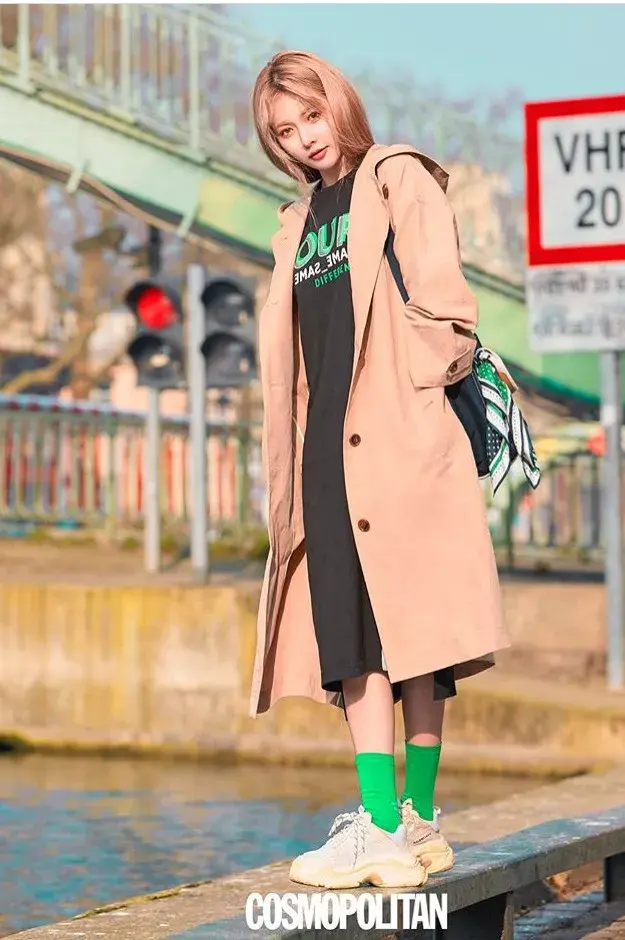 在近几年来,混搭风潮的盛行,每一件时尚单品都不仅仅属于单一区域了。像是运动鞋,以往我们只会想起和运动服饰一起搭配。但是现在几乎所有的单品都能和运动鞋搭配,而且呈现出不一样的style,一起随小编看看吧~ (本文不含任何软性商业植入) 运动鞋+运动装 运动鞋搭配运动装应该是zzui原始的穿法了吧 不得不说近年来的运动装真是越来越时髦了,抛弃了以往老土的刻板印象。宽松肥大的oversize版型都是潮人们的zzui爱,搭配随性的运动鞋自然zzui配~ 运动鞋搭配leggings也是当下很流行的穿法,酷似秋裤的leggings对腿型要求会比较高,对自己身材有自信的仙女们可以踊跃尝试,可以让你毫不费力就穿出潮人的感觉 运动鞋内穿加长的字母中筒袜,不仅区别开规矩的穿法,而且看上去更加时髦减龄哦 搭配运动裙的穿法更加少女,这样时髦的穿法即便穿出去逛街也是毫无压力 早晚微凉的部分地区,可以加件西装外套的chic穿法,脚踏一双运动鞋也都不会觉得突兀,怎么舒服怎么来~ 还是不知道如何选择的,那么小编还是建议入手百搭又不易过时的小白鞋~ 想赚足回途肥可以选择亮眼的红色运动鞋,搭配帅气十足的机车皮衣也是非常时髦的穿法 街头感的匡威帆布鞋也是非常百搭,很多明星都爱不释手! 宣美穿上今年大火的老爹鞋(品牌为LV)搭配仙气十足的百褶裙,青春有活力十足 泫雅ins上很多私照都是裙子搭配运动鞋的穿法,女人味十足的裙子搭配运动鞋,娘man平衡的刚好,妥妥的时尚icon没错了~泫雅的私服zzui不缺鲜艳显眼的颜色,但是鞋子一般会选择简单百搭的纯色系~ 为了造型的多变,泫雅会用同一双鞋子搭配不同颜色的袜子 想营造邻家女孩的小清新风格,简单的半裙搭配运动鞋帮你做到~ 像这种绸缎的半裙本身就给人一种很优雅的feel,但搭配运动鞋就变得活力日常些 格纹、条纹西装更有休闲感搭配小白鞋简直就是天生一对 春暖花开的季节穿粉色zzui适合不过了,相比于沉闷的灰色、黑色,粉色更加温柔活泼,搭配小白鞋减龄效果max,上班约会都没问题 来一张对比,西装搭配高跟鞋给人一种商务正式的感觉,而搭配小白鞋则更加随性休闲 来源:韩国服装搭配师