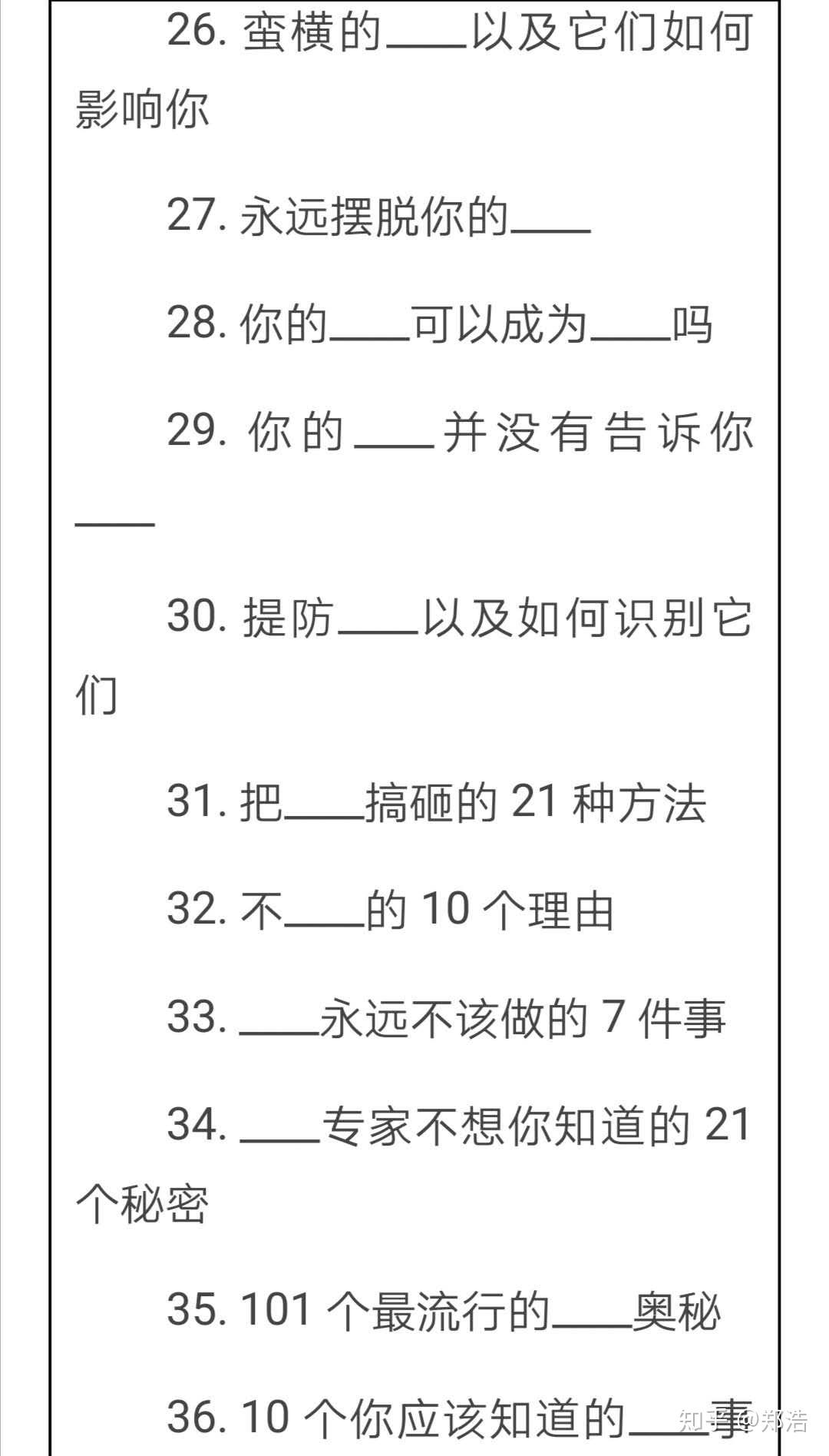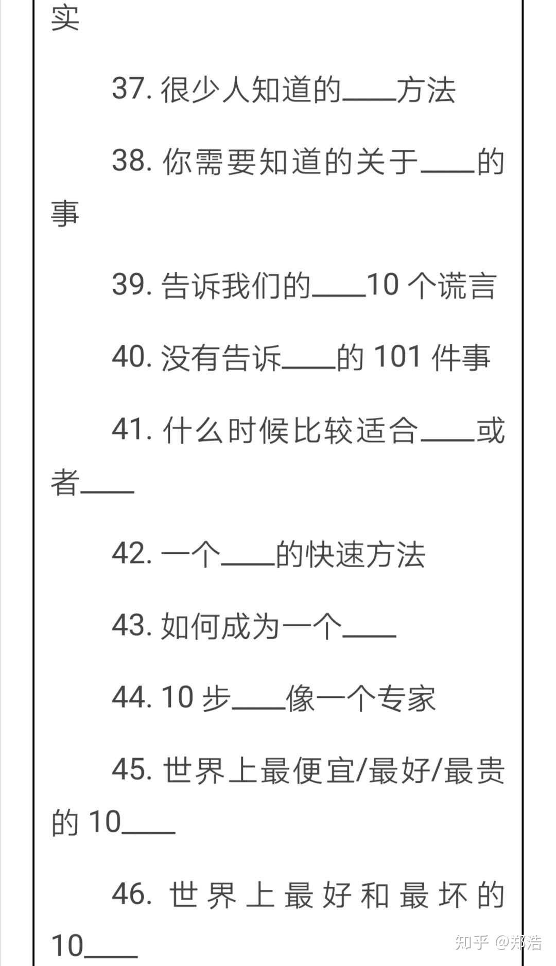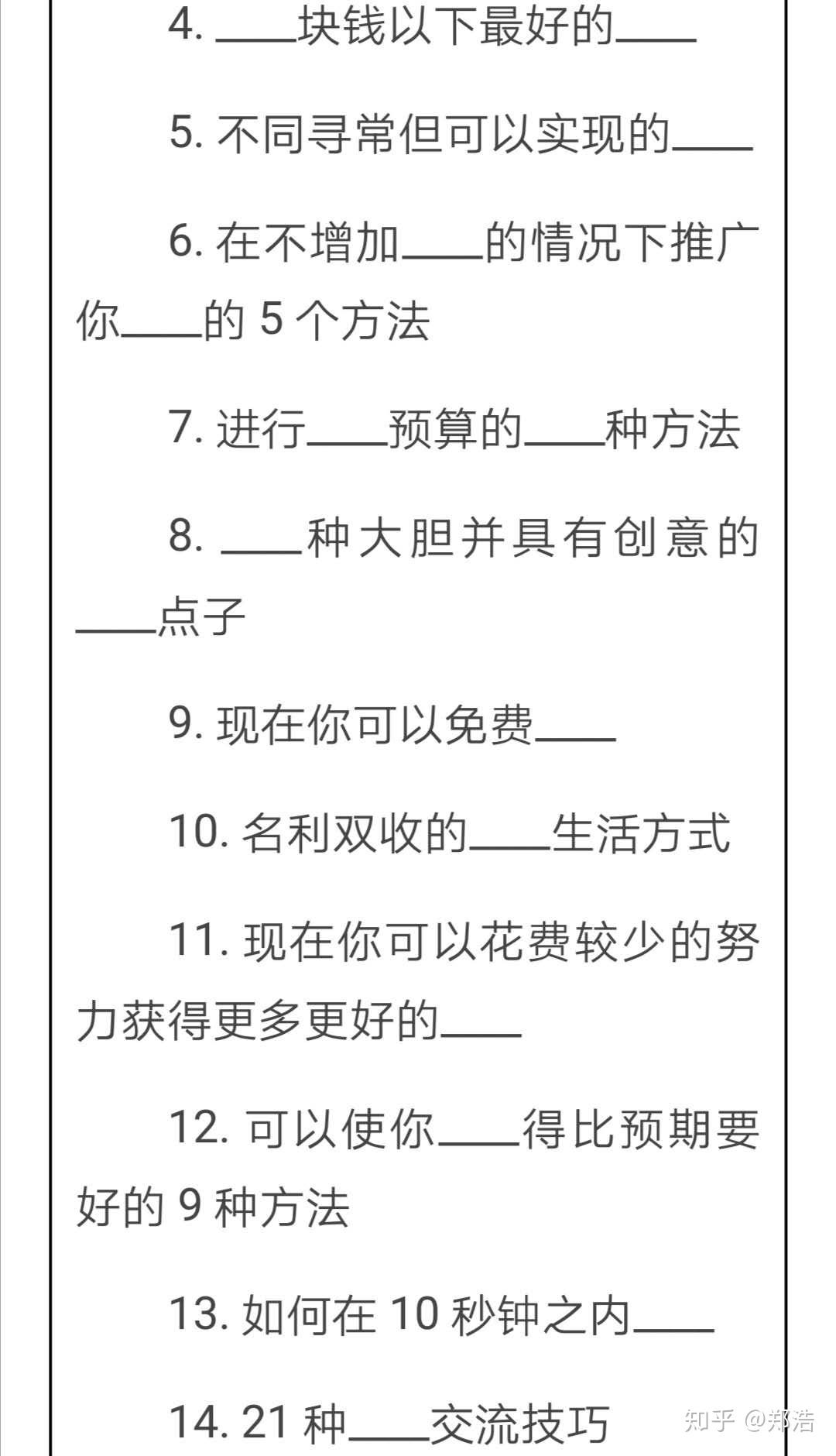 自媒体是近年来比较火热的宣传推广平台 我们不仅可以依靠自媒体的平台进行营销推广引流,还可以通过自媒体平台打造个人的品牌IP,可谓是一举两得。 随着自媒体时代的发展,越来越多的自媒体平台应运而生,我们可以根据自己的实际情况选择一些平台进行深入的发展。 我们一般都是首先做一个微信公众号作为一个中转站,之后通过微信公众号在去申请自媒体的账号,这样做起来会更加的有效率 我们简单地说说自媒体引流的有效建议 自媒体标题的创意写法 文章的标题往往是一篇好的文章加分项 所以我们在软文创作的过程中,一定要重视标题的编写,但是不能做一个纯粹的“标题党”。因为这是平台和粉丝都不喜欢的。 在这里我给大家提供一些模板进行参考 在标题套用的过程中,我们一定要学会活学活用,以便于更好的吸引粉丝。 自媒体软文写作 软文在引流营销推广的历史中是zzui为悠久的工具之一,软文的特性决定了软文营销无论在任何一个平台、渠道上面都有着充分的发挥空间。那么熟悉软文写作的方式和特点并与不同渠道相结合,就可以帮助我们引流工作顺利的进行 软文创作参考 我是郑浩,有着6年的互联网营销推广引流经验 如果大家在我的专业范围内有什么问题可以随时滴滴我,我都会一一解答的。 原创手码不易,看到的朋友们点个赞吧。~ 谢谢