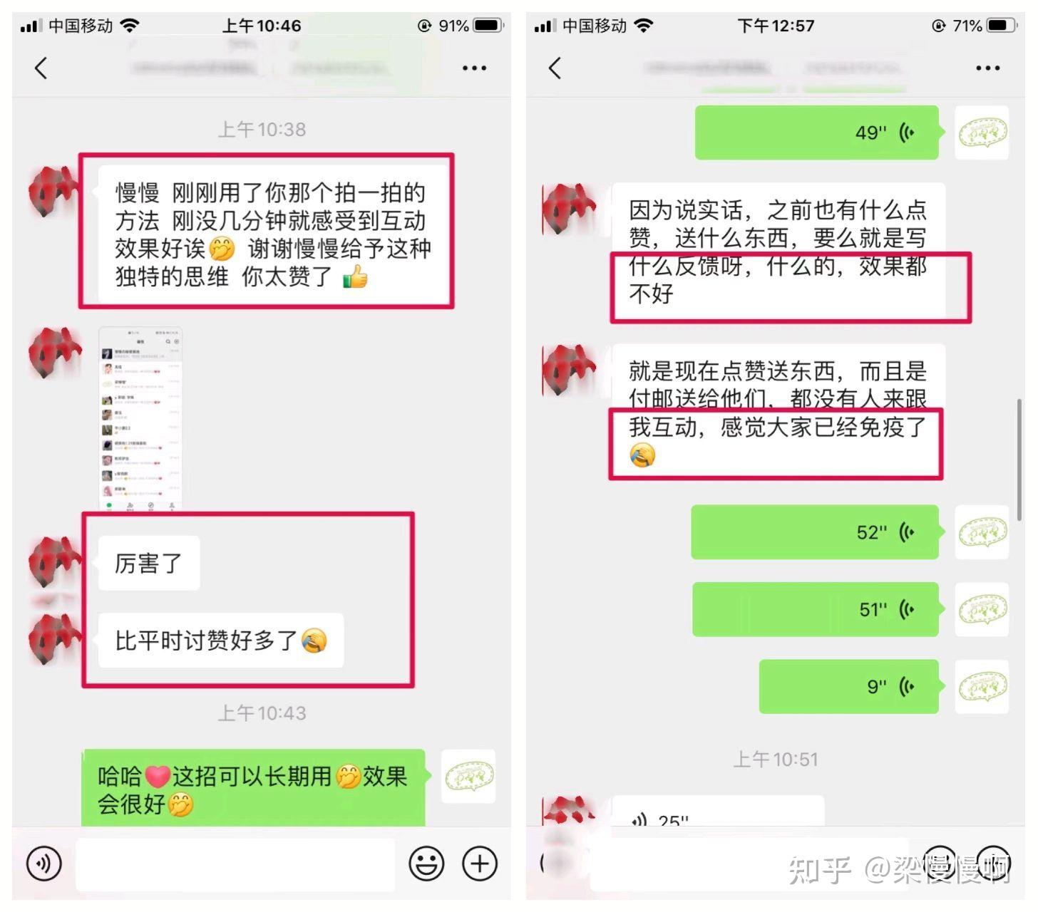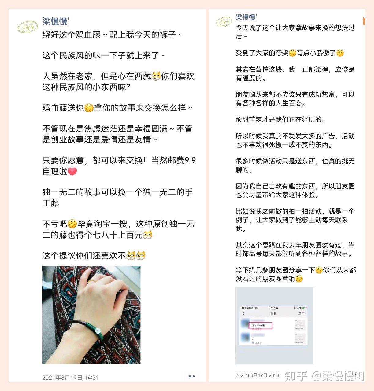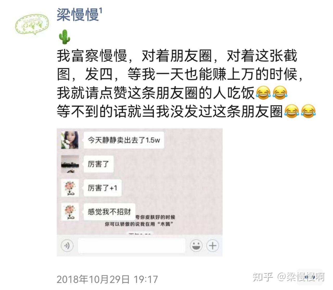 去年我做过这么一场朋友圈互动,通过结合微信朋友圈,自己微信的“拍一拍”功能。让顾客每天忍不住找我打卡,互动上瘾!! 不但如此,很多没有跟我说过话的小姐妹,纷纷私聊我,让我快快和她说话!这样她能够有机会每天拍一拍我跟我互动!! 然后我把这个互动的思路分享给粉丝,她表示,尝试了没有几分钟,就感受到这个互动效果特别好!比以前什么送东西好多了! 很多微商团队长,看了这个思路纷纷表示:用的时候一定要屏蔽同行,不想让他们知道! 今天就来跟你聊聊我自己用过的几种微商的互动方法吧。 群发打扰顾客,让别人上你朋友圈点赞的。这个,你觉得别人会给你点吗??大家都这么忙,如果是朋友,还会碍于朋友情分去点一下。 如果是陌生人,基本上直接删除好友,没有删除就已经是真爱了! 原因也很简单啊! 你想想这么一个场景: 所以,你想让别人百忙之中抽空跟你互动,请给别人一个理由:我为什么要帮你点赞?你能给我什么好处? 有了这个逻辑基础,我来跟你聊聊我自己用过的一些好用的互动方法吧。还会跟你聊清楚其中的底层逻辑。 这些都是我13年做微商就一直在用的方法,8年过去了,仍然有很多微商都在用这种方法进行互动。 就是发广告加上给大家的福利抽奖。 比如说你如果点赞收藏了这篇回答!你一定会精品富的!!看到这样的话,你是不是也会图个吉利点个赞呢! 【动动发财的小手双击屏幕两下试试,你一定会精品富!】 18年的时候,延禧攻略很火,网上有很多段子,所以我也改编了一下变成自己的圈来发。 前段时间回老家,看到一些自己剩下的手工品,就在圈里玩了这么一个模式:独一无二的手工换你独一无二的故事。 当天收到很多私聊,听了很多大家的创业故事。也有了很多的感悟。 喝水不忘挖井人! 朋友圈赚钱,能够做得起来,本质上都是因为大家的信任,所以,我也会时常做这种感恩互动,各种节假日就会在圈里发红包,说一些自己的心里话。 这是19年的圈了,现在拿出来看,也还是有感觉。 微商朋友圈,就像是我们的店面,过年的时候我也会像这样给“房东们”交店租! 这是16年的圈。这样的店租每一年都有交。 心理学上有一个名词,叫做“承诺的一致性”,说的就是,如果一个人帮助了你,那么他就会在心理上说服自己,你是一个好人,这样子他就能在心理上真正认同你。 所以我也经常会在圈里寻求好友的帮助。就像这样。 这是16年的圈,既可以让大家帮助你,同时也能让大家更有参与感,同时对你的产品更加有感情。 家里有只小黑猫,所以有的时候就会有这样比较搞怪的互动,可以丰富一下朋友圈丰富一下个人的性格特色,这样不会显得太单调。 全网独创的一个方法,让顾客每天找我进行互动。每天打卡!!就像玩精品一样上瘾! 我把这个思路分享给了一个粉丝,他把这个思路用在了抖音,每天发布作品都可以吸引粉丝来打卡,一下子就触发了平台的推荐机制,短时间累积了十几万的粉丝! 具体的操作方法,我也写了五千多字的胖友圈,欢迎围观! 除此之外,我的主页 @梁慢慢啊 还有上百万字的干货内容,是我微商8年来踩过的坑的经验总结,可以帮助你少走很多弯路,省下几十万!欢迎点开我的主页解锁相关内容!!建议点赞收藏了慢慢看,不吹牛!这些方法全掌握了能给你带来至少六位数的收益!!!