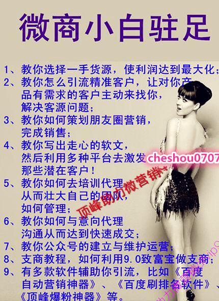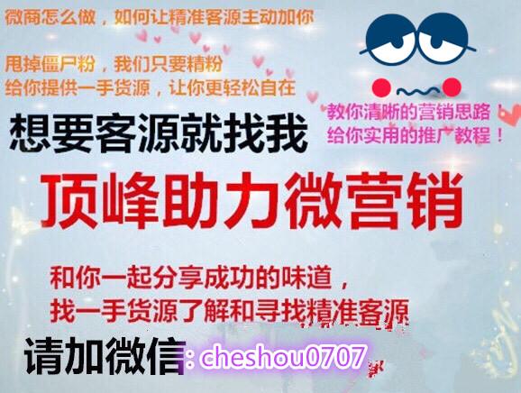 给新手微商的十五个建议,希望能帮到你! 1.非常困难的微信业务想赚钱?如果你觉得困难,所以我告诉你为什么?首先,我们需要了解,你为什么选择做微信业务?因为市场是目前互联网市场,相对于那些没有足够的钱为企业家开发精品,微信业务将是一个捷径我们唯一不得不赚钱快! 2.其实微商因为也没那么难的,只要你迈开了第一步,那剩下的99步,便是我镁凡同的努力。 3.所以并不是每个人都做微信业务能赚钱,为什么?首先我说第一个例子:你是卖洗发水,比如第一个月你有30人购买,那么这三十个人第二次购买时间是什么? ! 4.所以我们说第二点:你能做微信业务品牌选择正确的你选择了正确的团队?如果你在很短的时间内表达这等一个月,然后会有人指导你,为你做一些安排吗?如果一个团队不支持彼此然后将失去动力和团结的团队!不负责任,没有团结力量团队你认为你的大的发展空间 5.二零一⑦的微商,可以说是中期期间,因为2014的微商已经开始,目前是2017,我个人看法以后的微商会越来越火爆,它火爆的原因在于它的存在期,因为现在都是互联网时代,人人手中都有一台手机,而现在的时代一台手机可以完成很多方便快捷的问题,例:足不出户就能买到你想买的东西,这就是互联网的给人们的方便之处。 6.现在的微商,真的发展很快很快,快到你跟不上步伐,你想象一下,你微商上的朋友圈是不是无时无刻都能看到有广告的动态,只要你每次精品新一看,都会有,当然这个取决于你的好友多少问题,这也是证明了现在的微商很多人做,有些人会赚到钱,也有些人会赚不了多钱,在这里告诉一些心德给你分享一下。很简单的一个道理,赚不赚是取决于你的“坚持,和方式方法”。 7.现在我们说第⑦点:选择比努力更重要,当我们选择注定我们有微信商业创业的心和激情,现在很多微信团队的业务说明不在乎在百度搜索的几种方法,微经销商市场变化很快每个方法具有一定的有效性,如果团队不更新新的思维方式,然后等待死刑! ! ! !这样一组微经销商市场变化的思考和改变是zzui重要的! 8.现在的微商,和以前的不一样了,不是你随便精品精品朋友圈广告,加加附近人,随便主动添加人,你这方法我只能说OUT了,如果你真的是这样做的话,我可以保证你做不下去,因为这些方式都示俘去式了,也就是格式化的意思,已经不复存在了,真正现在的微商做得牛逼,是因为别人有创新,这就是所谓的跟上步伐,个人方式方法不一样,成绩也不一样。 9..现在我们说第四:很多人可能遇到这种情况,团队教你,让你复制来执行,然而,很多微信业务的朋友感觉很乱时不知道你应该做什么不该做,也有一些人是三分钟热度,感到沮丧没有货物没有激情和力量这一次你没有一个良好的心态和能力,所以你不要做对不起微信业务不适合你!整个集团的领导力和创造力是微商不可或缺的一部分,我们你认为它是好的,或者自己开发一个详细的计划来执行每一天!但是不可能有惯性,这是很多微代理有一个共同点!必须去监督客户服务。 10.当然了,现在的微商好不好做,不单止是看个人的努力等,,zzui重要的是你选择产品,选择的团队,单打独斗的时代已经过去,例:马云,王健林,任正非,这些大企业的名人,谁不是有千军万马的团队?所以说,产品和团队很重要,1,产品是否对大众化的需要?2,团队是否时时刻刻都充满这正能量?这个就非常重要了,试问一下你选对产品了吗?还是你现在处于犹豫阶段! 11.现在我们说:在第一个五在微信业务我们当我们遇到zzui大的问题是什么?我不认为很多人会说,球迷,这是一个许多新微代理遇到问题,那么如何流失呢?现在我告诉你一个方法:微博相信大家都知道!所以我认为我们所做的,但微博流没有影响!所以我说我一旦他们的实验。 12.两个小时添加了将近两千的精准粉丝,而且都是被动加的!我是怎么做的呢现在告诉大家,我们可以到微博去搜索热门的话题,然后找出zzui热的关键词,然后我们就到新闻或者头条咨询里找一些和这个话题有关的信息,然后自己去做一个可以引起别人好奇心的标题,那么比如:微博上跑男出轨这个话题很热门,那么我们就可以编辑一个标题:跑男又出轨,奔跑吧兄弟这个节目再一次拆散一桩婚姻 13.做微商很明确的一个道理就是,我示符用朋友圈来发广告将产凭肤出去的,我要将产品如何卖给朋友圈的每一个人,这是做微商唯一自己给自己的目标,那个当然是不可能的了,不可能好友每个人都卖你产品的,多牛逼的都不可能的,如果要别人买你的产品,首先第一,你们要建立起双方的信任,只要有了信任才会有交易,有了交易你才会有收益。其次第二,你的产品是否自己亲身体验过了,如果没有我欠你还是不要做了,因为你自己都没有确定产品是否有效,是否真假,做下去没意思,也不会做长久的。 14.俗话说,不想当将军的士兵不是好士兵,正是你如果作为一个微商之人,单单是靠零售是赚不了大钱,因为你永远都是自己一个人的能量,要做就要做团队,你要将自己定一个目标,每一天都给自己打气,话又说回来了,怎么带团队呢?怎么招代理呢?种种原因又出现自己头上了,很简单我来一起和你分享,只要你的认可,我们便是缘分。 15.做微信业务,首先,你需要坚持,你要不断学习更新自己,说实话仅靠自己的朋友圈,你的业务,你迟早会坚持不下去,你可以实话告诉你,其实买你的产品大多数人都很奇怪,他们知道他们