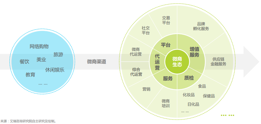 微商本质为一种社会化分销渠道,随着微商发展逐渐走向规范化,针对渠道重新建立供应链等各项标准,围绕渠道将衍生更多服务,生态化发展为微商未来长期的发展趋势。