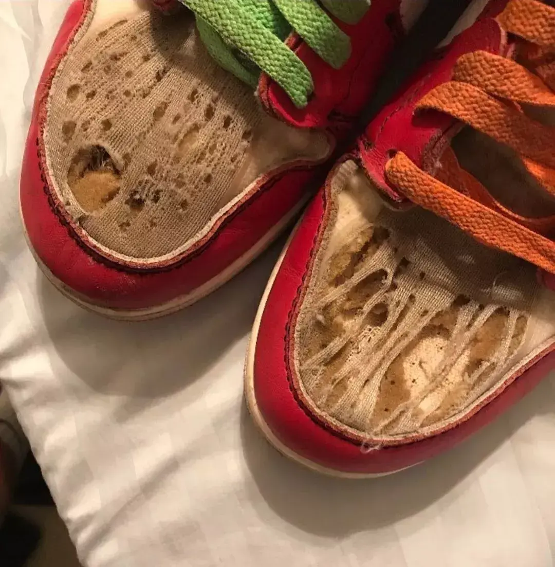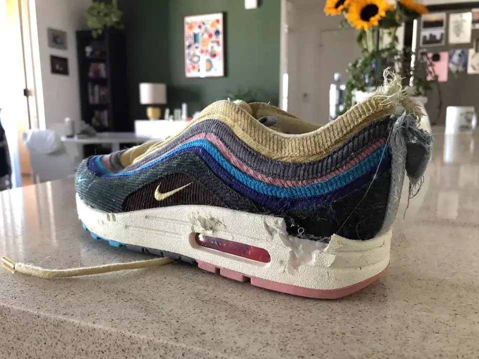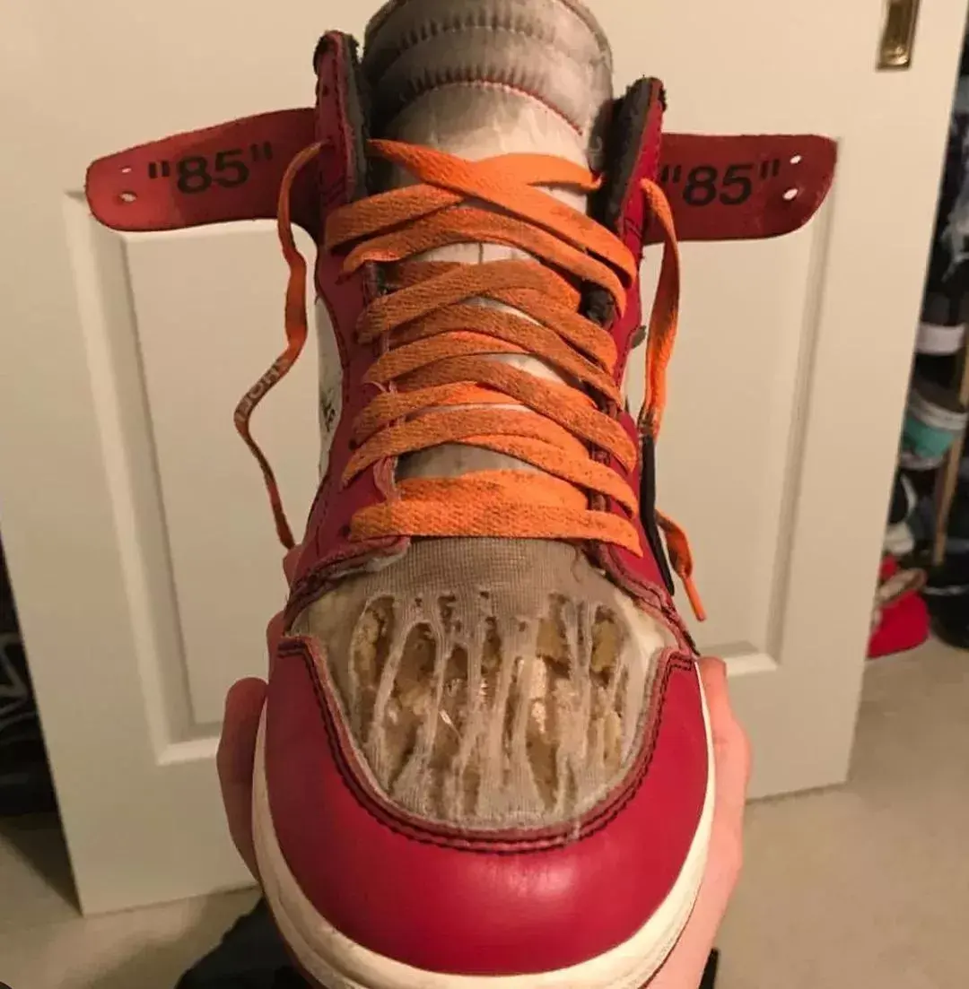 资深 sneakerhead 总是喜欢以鞋狗自居,一方面是向 Nike 创始人 Phil Knight 致以崇高敬意,另一方面则是生动形象地表达了他们对球鞋的忠诚与热爱。不过,残酷的事实告诉我们,鞋子和狗子,很难共存。 前两天我去朋友家喝精品,他家养了只二哈,五个月大,特别招人喜欢。不过当我看见它捧着我的 vapormax 狂舔的时候,我真的很想炖一锅狗肉汤补身体...朋友淡定地安慰我说,没事,你这充其量是湿了点,这小祖宗已经咬坏我三双AJ了... 狗子们对于鞋头的伤害并不罕见,并且往往会随着球鞋的炒价走势而成倍递增。前段时间,一位国外的鞋头便在网上含泪对自家爱犬进行了控诉。 一双炒价上万的 OW x AJ 1初代,仅仅一晚没有放入鞋盒,便被狗子安排上了一波破坏做旧的二次创作。遍布鞋身的未知污渍还算可以挽回,对鞋面造成的致命精品则回天乏术。虽然这位鞋头并未对爱犬的来历进行介绍,不过从其做旧手法看来,师承 Samuel Ross 是没跑了。 上面这位鞋头的血泪史为我们阐述了收纳球鞋的必要性,而下面这位网友的经历则告诉了我们,选择配色也需要谨慎。 当他还在好奇狗子为何选择这双炒价3k多的1/97来大快朵颐时,网友 @pumpedupkicks35给出了正确答案,兄弟,给你个建议,以后不要买这种看起来像蛋糕一样的鞋。 如果你有留意这张图片的背景,你会发现涉嫌精品力袭击1/97的狗子还在继续作案。在心疼狗主人的同时,想必很多人会产生疑问,这家伙平时是不是把鞋储藏在狗子的饭碗里? 在狗子们无尽的攻势下,很多鞋头已经自学成才,练就了一身客制本领,哪里坏了剪哪里,网友@xRadec表示,这种村上隆风格的客制拖鞋,他已经安排四双了... 也有人在漫长的斗争中掌握了狗子们作案的普遍规律。网友 @UltraLorde 表示,我们家的狗对于人民币的味道特别敏锐,Vans、Converse之类的都能跟它和平共处,但超过千元的单品它一个都不会放过。 网友 @dzimi91 则表示,我家养的是一只 adidas 粉丝狗,凡是 Nike 的鞋履都逃不过它的魔爪,堪称一只面无表情的 Swoosh 杀手。 为了给自己的爱鞋谋得一条生路,狗主人们可谓想尽了一切办法。有人将球鞋束之高阁,有人把球鞋藏入鞋盒,但结果往往都是徒劳的,网友@pauper发现了一个残酷的事实,自己的狗竟然会开箱... 不过有趣的是,不管鞋头们如何与自己狗子斗智斗勇,zzui关键的煮狗肉汤环节永远都停留在口嗨阶段。狗主们的嘴都很硬,“鞋都已经坏了,不能再失去一条价格不菲的狗。” 那么狗子为何总会跟狗主的球鞋过不去呢?普遍来说有三种原因,可能是你家的狗子正处于换牙长牙期,咬鞋属于生理需求;也可能是鞋上有你的味道,你家狗子很喜欢;还有一种可能就是,你家狗子想引起你的注意,让你多陪陪它。 也就是说,假如上述三个条件你都能安排地明明白白,你家狗子和鞋子之间或许会有不一样的打开方式...