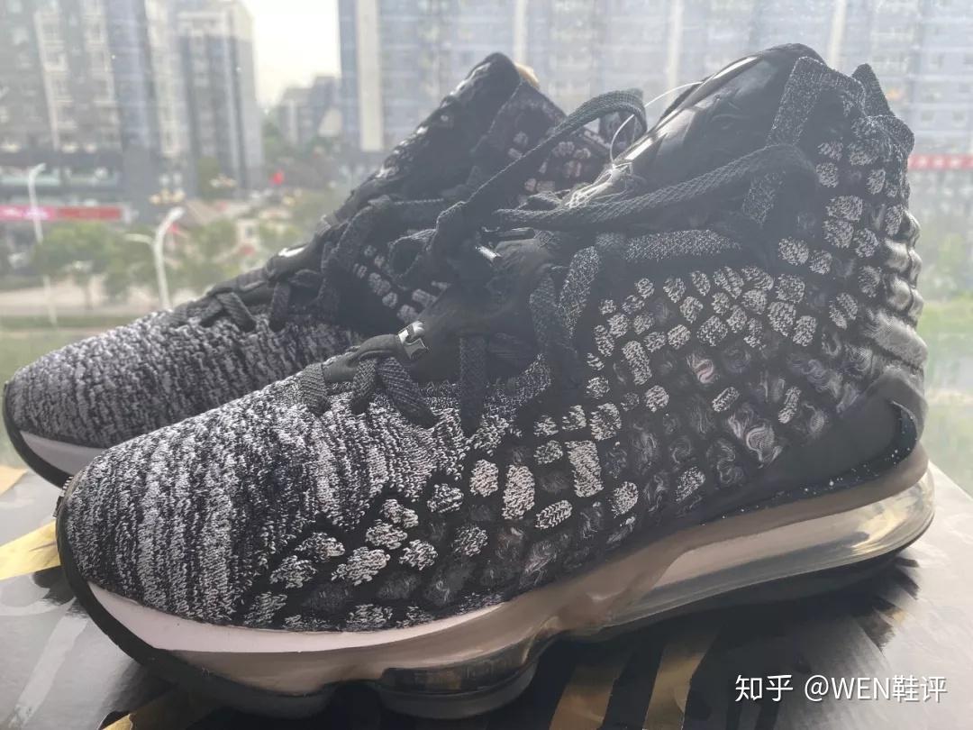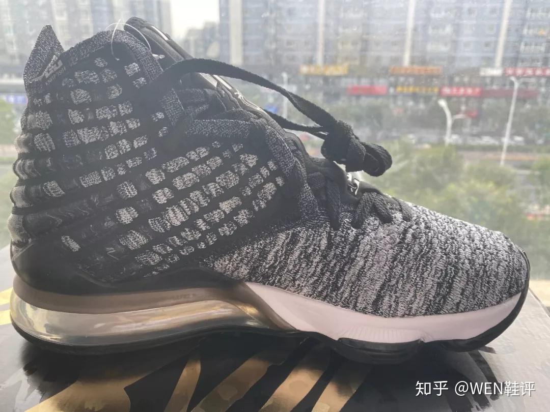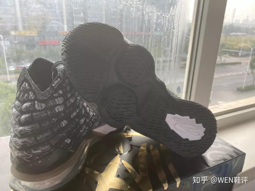 尺码:US9 EUR42.5 发售价:1599 市场价:1200 单只重量:500G 有无偏码:偏大 先来看鞋盒吧,这个鞋盒我觉得还是蛮好看的,特别是对比一下LBJ16的鞋盒,整体的这个涂鸦风格,加上这种鎏金的字体的LBJ XVII,会让我觉得很华丽,很大气,很霸气。LBJ16这个显得太低调了一些。鞋盒的侧面是这双鞋的信息,以及一个logo。 OK,看完鞋盒我镁反看鞋,这次LBJ17整体采用的是一个中帮的设计,没有继续上一代低帮的设计。 其实看LBJ17的造型会让我觉得有点像是LBJ10,让我挺有回忆的,不过这里就不聊了,我们还是专注于球鞋本身。 这双鞋LBJ17可以说是让我移情别恋的一双鞋。因为在AJ34正式曝光之后,我说34肯定是我今年zzui爱的,必须要入的一双鞋了,但是LBJ17公布了正式的照片以及配置之后,好吧,我承认男人都是易变的动物。 抛出情怀的因素,LBJ17身上运用到的新的科技才是真正吸引我的点。 首先就是鞋面了,官方的资料显示,这次LBJ17运用到了全新的鞋面科技:knitposite。据悉,这种鞋面材质是将Foamposite以及Flyknit两种鞋面材质的优势相结合所打造的一种新鞋面。 那这两种鞋面大家应该都很熟悉了:Foamposite是喷泡上的鞋面材质,特点是硬度高,Flyknit则是一种编织材质,很有鞋都有用到比如AJ32。 有印象的小伙伴应该还记得,当时这双鞋的配置信息公布之后我是很期待的:因为按照我的设想,这个鞋面,可以兼顾轻质和鞋面支撑。换句话说,我以为这双鞋也会和AJ34一样,走一个轻质化的路线。不过拿到鞋子之后,我发现我还是年轻啊。毕竟这个单只接近500G的重量摆在这里,给了我一记重重的耳光。那Nike官方的资料说明是:这样的鞋面兼具耐久度,支撑性且抗拉伸。我还是比较期待的。 这个鞋面前掌这里,是可以看出来是那种很厚实的编织的,中掌开始,这种热熔式的织线让我看的有那么一点点难受。这种感觉怎么说呢,我看着像是那种岩浆在冒泡,不过我觉得文胖那个描述更准确:像是哥斯拉的铠甲。嗯……这么一看,整双鞋都挺哥斯拉的哈? 鞋舌是我zzui喜欢的地方。据说每个配色上鞋舌的信息都是不同的,我们手中这款黑灰配色上,左脚和右脚上的雕刻花纹都是不一样的,可以说信息量很大了。可以预见的是,LBJ17可以在鞋舌上做出很多文章。 鞋面上另外一个亮点可能就是后跟处的这个倒钩设计了。泼墨的Nike swoosh在外置tpu上很有质感。当年LBJ10也是这样的倒钩设计。那这层外置tpu也是从鞋子的中底贯穿到鞋面。进而包裹住了整个后跟,从而提供一个更好的包裹和支撑。而这双鞋后跟的内置tpu做的也是面积很大,硬度很高。 接下来,咱们聊聊这双鞋另外一个很吸睛的地方:它的中底。 前掌是两大块Zoom Air,后掌是一块超大的Max Air。 前掌这两块独立的Zoom Air单元,可以提供更好的回弹和反馈。同时,前掌位置这里一个上翘的设计,也更便于突破。后掌,则是史上zzui大块的Max Air。 回顾一下今年Nike几款鞋:alphadunk的Zoom bag,AJ34前掌一整块的Zoom Air,LBJ17后掌一整块的Max Air ,今年Nike这是要将单掌大面积气垫用到极致嘛? LBJ的Zoom Max我是真的踩不动,但是LBJ17不论是前掌还是后掌,我都能体会到不错的回弹,而且后掌的脚感有点类似Vp Max的脚感。可以说,相对于LBJ16,LBJ17对小体重的朋友更为友好。 之前我们也说到过,前掌放气垫便于启动突破,后掌放置气垫可以给大体重的朋泳丰供更好的缓震。同时Max比Zoom的缓震极限更高。当时就有朋友问,那前掌Zoom+后掌Max,岂不是zzui好的球鞋配置了?有没有这样的鞋?喏,这就是咯。 但是大家也不要开心的太早,在这里我还是有一个顾虑的:后掌的Max Air,是不是存在着被刺穿的风险?如果遇到了尖锐的物体,我还是很担心它的安全性的。 鞋底的纹路还是很深的,加上这种橡胶的材质,加上XDR的标签,我觉得耐磨还是值得期待一下的,至于抓地,还需要后续的实战体验才能得出结论了。 总的来说,这双鞋的配置还是挺让我流口水的,加上这双鞋在配色上有着无限的可能性,我觉得还是蛮不错的一双鞋。当然,它的性能到底怎样还是要等到实战之后才能检验。 OK,本汾LBJ17的开箱到这里就全部结束了,大家记得点赞收藏投币三连支持一下哟。未来,我们不仅会带来客观、专业的球鞋测评,还会第一时间提供各大热点球鞋的热点资讯。 这里是zzui懂你的WEN鞋评,我示符子,我们下期再见,byebye。