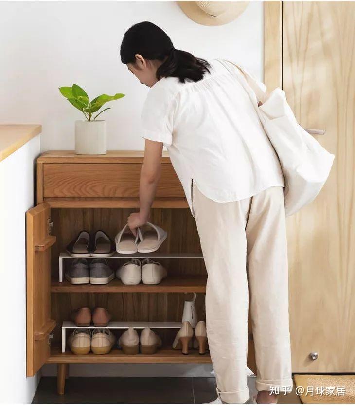 蜈蚣精必备的4种鞋柜收纳速成指南。 今天月球收纳规划局在这里为时髦的“蜈蚣精们”准备了4种鞋子收纳法,即使是小鞋柜也能成为收纳大胃王~ 虽然拥有鞋柜,但日子久了我们会发现,鞋柜并没有放很多鞋子却已经满满当当。 而且日常中有些鞋子摆放不整齐,鞋子经常会七零八落,强迫症看了简直受不了。 鞋子在平放的时候利用率是zzui高的,但仍然有一些鞋柜空间没有利用到。zzui简单的方法就是我们将鞋头和鞋尾交错摆放,三双鞋子能足足划分出6cm空间呢! 如鞋柜高度较高,我们可采用分层缩小空间法去处理鞋柜内部收纳的问题。 平底鞋一般在10cm,运动鞋20cm,高跟鞋30cm,用一个可以调节高度的伸缩架,把鞋柜空间分割开来,高效利用空间收纳不同高度的鞋子。 除了买伸缩架,还有现成的独立鞋托,针对鞋柜上部空间进行收纳,摆放更整洁独立。 家里鞋柜要是不够,还能用DIY鞋盒拯救无处安放的爱鞋! 其实独立透明鞋盒足以让你每天可以花不少时间欣赏自己的爱鞋了;换季的时候也超方便。 一个鞋柜拯救不了鞋子发烧友的,一墙鞋盒可以。针对爱鞋人士对鞋子保养有需求的。可采用墙面凹位+帘子+鞋盒,做成鞋子收纳区。 无论是透明鞋盒、羊皮纸鞋盒,整个效果看下来,那是震撼住的小伙伴杠杠的! 针对名牌鞋子收藏达人可以用防紫外线的鞋盒,更能保护好鞋子不受氧化。 好不容易到手的鞋子,当然要美美地欣赏。一个资深的蜈蚣精,又不想占多大面积的,更适合开放式上墙的收纳设计。 INS上超火的铁艺大网格,做收纳架也很适合摆放高跟鞋,还能DIY各种装饰。 立式鞋架收纳只占一本书的位置,zzui适合收纳常穿鞋子,随取随放。 还可以用长搁板或短隔板当开敞鞋架,或者用能折叠的小隔板就更能节约空间。 能折叠起来的小隔板不用了可以收起来,对空间利用实现zzui大化,适合存放平底鞋、拖鞋等高度较低的鞋子。 如果是热爱高跟鞋的小仙女,高跟鞋上墙需要做到的改动成本更低。在门后或者墙面装上挂杆,一整壁都能挂鞋子了。 直接一挂,鞋子就放好了,省去摆放鞋子的时间。 如果拖鞋平底鞋比较多,用立式收纳架来整理,整齐又美观哦。 如果玄关够位置的话,添一张放鞋换鞋二合一功能的换鞋凳,换鞋凳高度都在50cm左右,足以放一些常穿的或当季的鞋子,简单又节约空间,视觉更清爽,更适合小户型的家。 如果想把鞋子都藏起来,让家更宽敞,下面这些脑洞大开的方法了解一下: 床底是个不错的藏鞋底点,如果床底空间在10cm可以用来收纳平底鞋,同时装上带轮滑的收纳架抽拉拿取更轻便。 要是换季时,鞋子特别多的话,用收纳篮把鞋子收纳起来,放在角落里面度过换季尴尬期。 让美鞋都有属于自己的归宿,也是每个“蜈蚣精”的小小梦想。 想要看更多居家干货? 为学会新知识点赞▲鞋柜扩容术