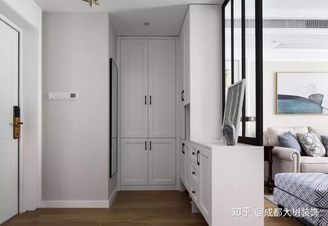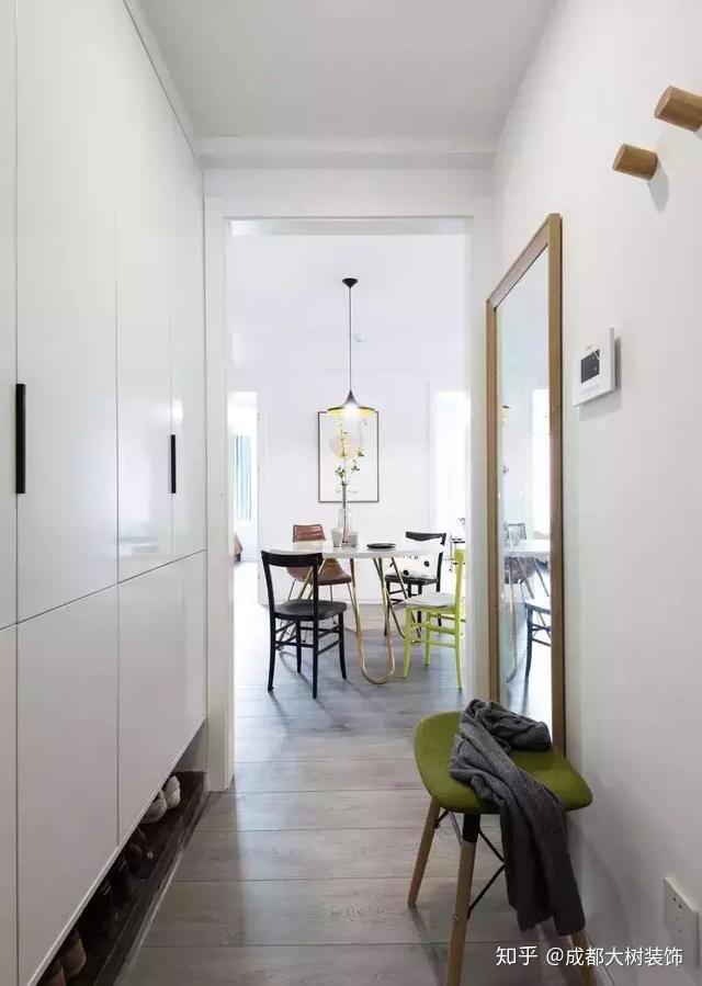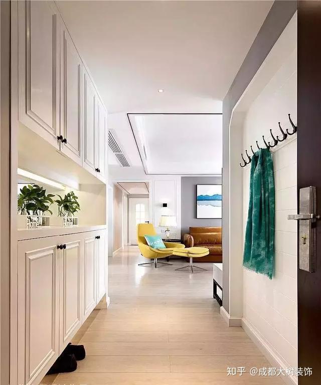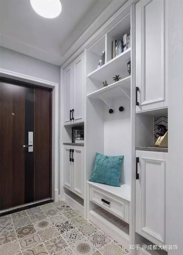 小编的朋友新家装好后请我做客,结果满是喜悦的心情一进门就萎了,因为门口是这样的↓↓ 兔菇凉不由感慨,一个设计合理的鞋柜是多么重要啊!! 一个好鞋柜应该注意哪些? 鞋柜深度以35~40cm为主 虽说男女、小孩的鞋大小不同,但是鞋子的长度一般不会超过30公分,因此鞋柜的深度zzui起码得有35~40公分,在这个尺寸范围里大鞋子能刚好放得下而不显得拥挤,也不会因为太大浪费收纳空间。 层板间距离密一些,方便根据鞋高调节 至于鞋柜内的隔板层高,则需要考虑到自身鞋子的款式和高度,再进行区分设计。一般鞋柜高度在15cm左右,放置短靴的层高设定为25CM较佳,放置长筒靴的层高则需要拉高到50CM。 但因为男女鞋有高低的落差,建议在设计时,两旁螺帽间的距离可以密一点,让层板可依照鞋子高度调整间距。 鞋柜能设计成什么样子? 嵌入式鞋柜 如果入户门空间小又想要一个大鞋柜,那么建议做嵌入式鞋柜。嵌入式鞋柜一般是和进门吊顶结合设计的,不仅美观实用而且可以大大节省室内空间。 组合式鞋柜 组合鞋柜,有极强的收纳功能,只要一面墙的空间就可以做一个储物柜,上层做储物,中间挂衣帽,下层原木鞋凳,不管是是美观度还是实用性都非常高。 非要说缺点的话,那就是储物空间小,能放的鞋子少。兔菇凉建议搭配另外用来收纳鞋子的大鞋柜子一起使用,鞋凳下面空间就用来放一些当季经常要穿的鞋子。 隔断式鞋柜 隔断式鞋柜zzui常出现在没有玄关的户型设计中,它能在这个区域做一个视觉缓冲,避免一进门就望到底的尴尬。隔断式鞋柜一般设置在门侧,上部分的隔断设计既保证了私密性,又增加了空间层次感和通透性;下部分的柜体设计,则能很好的收纳各类型的鞋子。 阶梯式鞋柜 阶梯式鞋柜是比较个性化的设计,它对于功能的区分是比较明显的。柜体呈阶梯状层层向上,在满足收纳的同时又给这个空间增加了趣味性。 鞋柜格子考虑打排孔,灵活性会更好,隔板高度能随意调节。 强势总结: 1、鞋柜设计距离入户门越近越方便; 2、鞋子平放柜子深度在35厘米左右,如果深度不够,可以考虑内部设计成斜放、横放、旋转式等等; 3、鞋柜底部留空可以放拖鞋和常用鞋,中部留空可以随手置物; 4、zzui好考虑融入换鞋凳、衣帽钩、穿衣镜等功能; 5、鞋柜格子考虑打排孔,灵活性会更好,隔板高度能随意调节。 想了解更多家装知识-请关注成都大树装饰,成都品质家装公司!