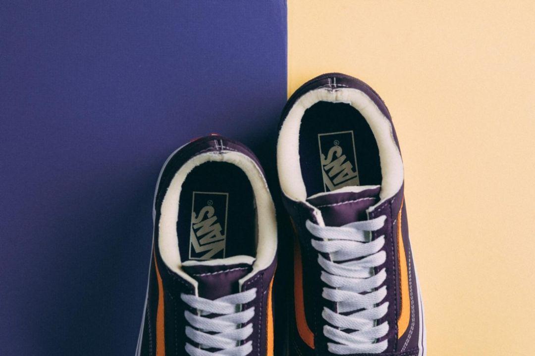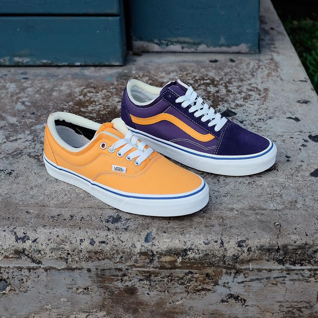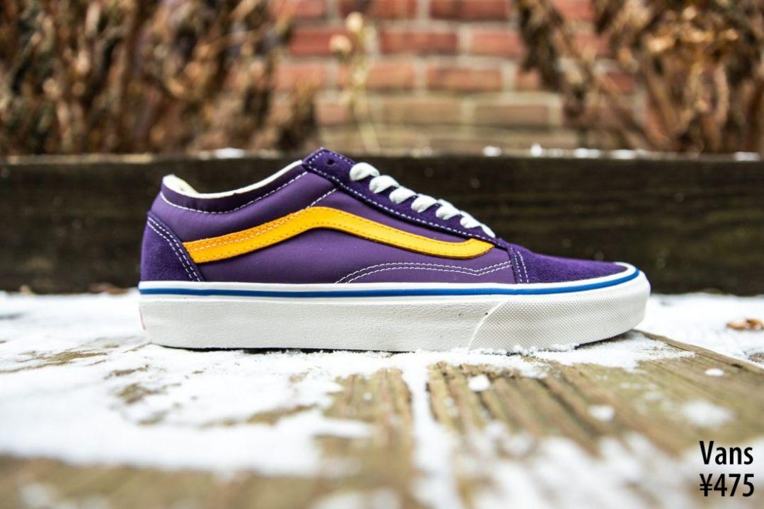 Old Skool是亮紫色鞋身搭配橙黄色Sidestripe,这个调色盘有点妙。