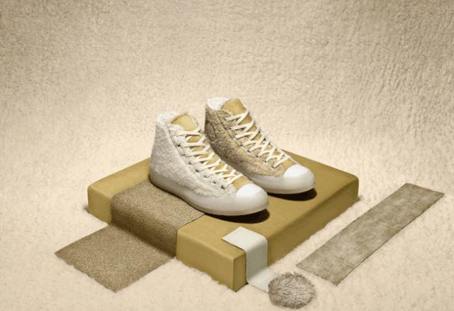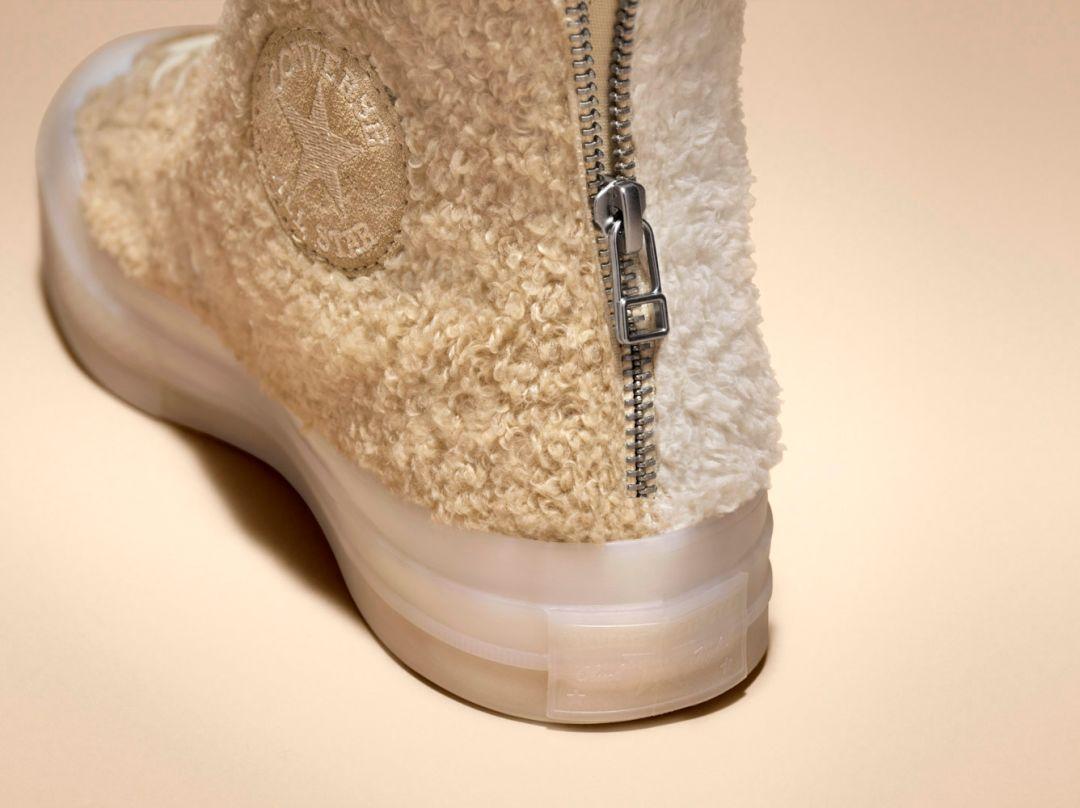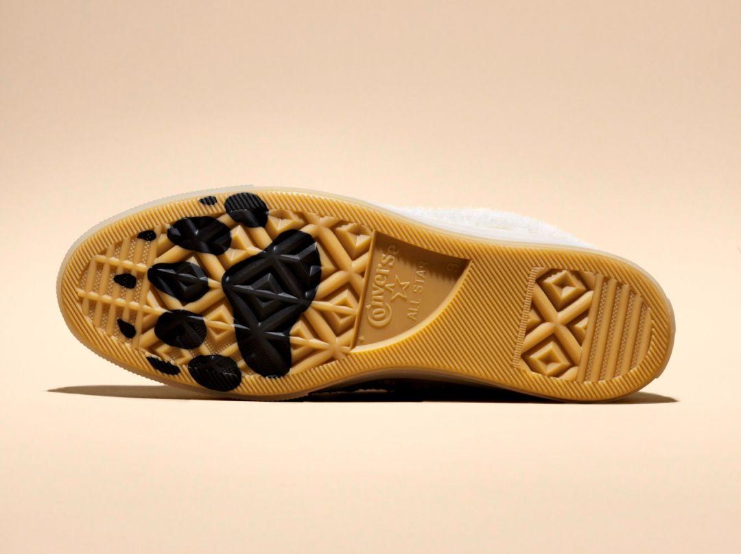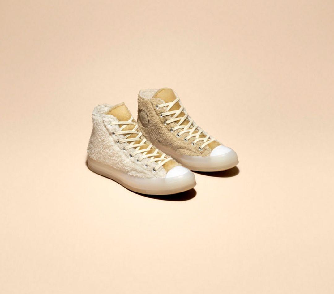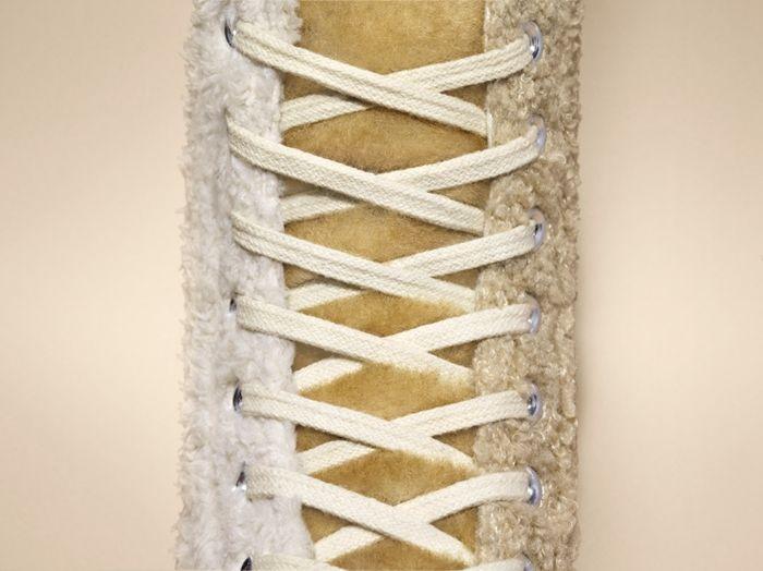 Chuck 70以白色和棕色为主,是阴阳面的设计,鞋身示粪似北极熊毛的毛绒材质,