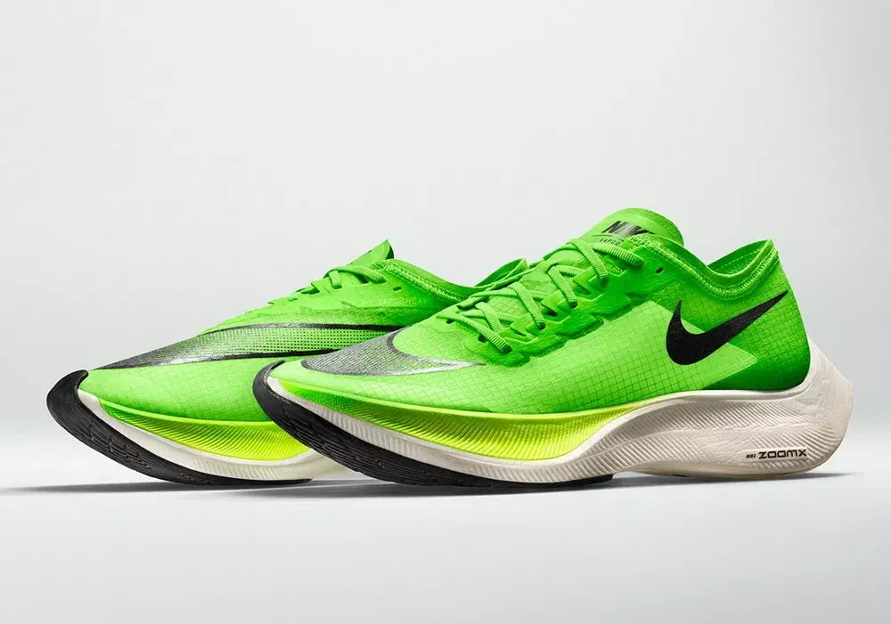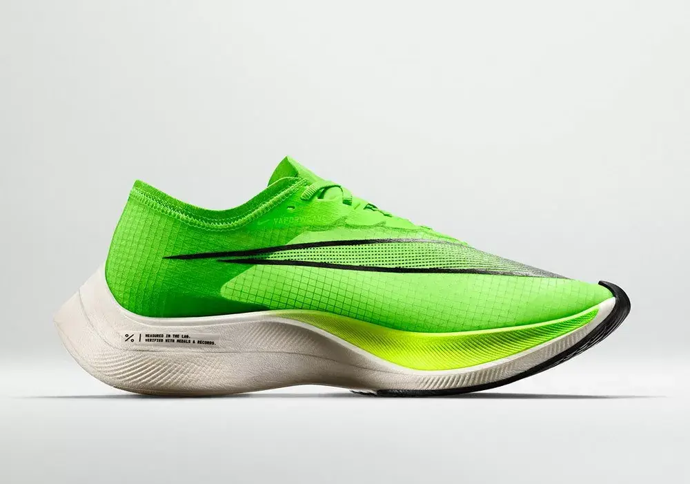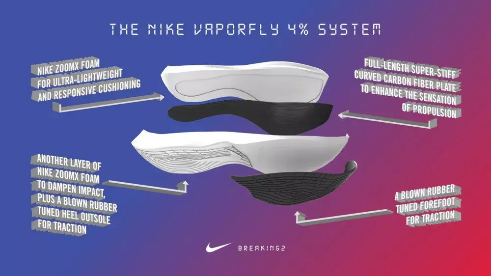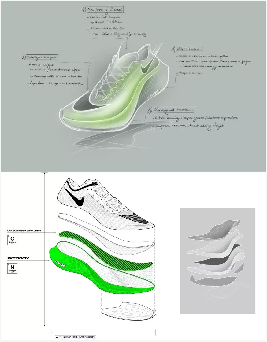 两年前,基普乔格在第一次Breaking2活动分享时曾经说过:「虽然突破人类马拉松跑进2小时的挑战充满未知,但我坚信未知就是用来被突破的,我想用脚步来证明,人类是没有极限的。」 两年后,基普乔格兑现了自己的承诺,以1小时59分40秒的时间将马拉松带入全新的「1」字时代。而他脚上的「破二」战靴又是如何发挥出神奇功效,助他实现突破人类极限的壮举呢? 故事还要从2014年说起,当时Nike内部就已经制定了在当时看来几乎不可能实现的宏大目标——通过创新跑步技术和自身的产品,来打破马拉松2小时的纪录。 为实现这一壮举,Nike与来自科学和运动领域的专家团队合作,制定了包括运动员、产品、训练、营养和环境在内的一整套方案,其中为本次挑战全新设计研发的Nike Zoom VaporFly Elite更是成为跑步鞋迷关注的焦点所在。 作为一名跑步爱好者,你对于马拉松跑鞋的印象是什么?轻薄的中底?亦或是足够生硬的脚感?当你在潜移默化中认为这就是跑鞋世界中的不二法则时,Nike却再一次颠覆了我们的认知。 以Nike Zoom Vaporfly Elite为代表的第一代「破二」跑鞋,首先就以其极富视觉冲击力的厚型中底结构表明了与常见轻量跑鞋的不同。 它不仅足够轻质,同时还提供了更多的能量回弹,高高翘起的尾部造型又彰显了它是如此的特立独行。舒适、贴合、轻质的Flyknit鞋面在跑步过程中则提供了足够的支撑和完美的包裹。 传统跑鞋(平底鞋)剖面比较平缓,而Zoom Vaporfly Elite的渐进式ZoomX缓震中底,前掌高度却达到绝无仅有的21毫米,同时与传统泡棉相比明显更轻盈、柔软且灵活。 的中底设计旨在给运动员提供更高的能量回传并兼具超强的缓震性能,可以说Zoom Vaporfly Elite将运动员的生理特征、生物力学分析与尖端工程结合了在一起。 在这款Zoom Vaporfly Elite身上,我们认识了全新的ZoomX中底。虽名为「Zoom」,但实际上它却不再包含我们熟知的Zoom Air气垫,相较于常态EVA材料提供的60%能量反馈,ZoomX这种新型的泡棉材料则将此项指标提升到了高达80%. 此外,这款鞋还将全长的弧形碳板内置于中底,以实现更佳的能量回馈,减少运动时的损耗从而更有效地提高运动员的跑步效率。 第二次挑战「破二」项目时,基普乔格的身份已大为不同——在以2小时01分39秒打破全马世界纪录后,他已成为了名副其实的「世界zzui快男人」。与他在2018柏林马拉松一起创造全新世界纪录的正是开启他职业生涯新阶段的Nike Zoom VaporFly Elite。 2019年4月,基普乔格延续着他的巅峰状态,以破赛会纪录的2小时02分37秒赢得了个人第四个伦敦马拉松冠军,而他脚下的新款Nike ZoomX Vaporfly NEXT%,也宣告了Nike新一代跑鞋旗舰的到来。 第一代Nike Zoom Vaporfly Elite对应于大众熟知的市场销售款就是大名鼎鼎的Vaporfly 4%跑鞋,而其后问世的新款ZoomX Vaporfly NEXT%跑鞋,则带出了更多新意。 ZoomX Vaporfly NEXT%依旧沿用全掌超轻ZoomX泡棉,搭配内置全长铲型碳板。zzui大的不同在于NEXT%用到的ZoomX材料比Vaporfly 4%增加了15%,但重量保持不变!同时NEXT%的鞋面也从此前的Flyknit材质升级为新型Vaporweave材料,更轻更薄并能有效抵御汗水和雨水的过度吸收,保持透气和干爽。 新增一层薄薄的加垫泡棉包裹足部,可在长距离跑步过程中保护阿基里斯腱,避免造成摩擦刺激。而前后掌高低差从原来的11毫米降低至8毫米,也拥有了更好的灵活性和抓地力。 在正式开始自己的第二次「破二」挑战前,基普乔格一直都是穿着ZoomX Vaporfly NEXT%亮相,公众自然也将这款跑鞋视为其再次挑战极限的首选助手。不过在比赛当天,他却换上了一双此前从未公布的新款Nike跑鞋。 虽然官方发布日期和信息尚未公布,但这款跑鞋似乎就是传说中的Nike AlphaFLY,其所代表的正是Nike未来跑鞋的全新科技思路与结构概念。 这款神秘跑鞋的整体设计已夸张到近乎「变态」的地步,不仅采用了内置隐藏式加外置可见式两组Zoom Air气囊,结合多层内嵌式碳板来增加前掌的弹性,更将全掌ZoomX中底的厚度提升到了惊人的5厘米,拥有如此「怪物」级的配置,其售价据悉也可能达至775美元的天价! 这双跑鞋也成了当日全场的焦点,在其他团队兔子粉色款ZoomX Vaporfly NEXT%的包围下可谓众星捧月——不仅因为它是真正的冠军之靴,更在于未来Nike的新科技及设计风向上都将在这款全新跑鞋身上得以实现。 我相信人类的全马成绩没有极限,而在鞋子的创新上更是没有极限,希望能够早日看到这款跑鞋正式面世,也让我们每个人都有机会去突破自己的极限。打破常规,让梦想不再遥远