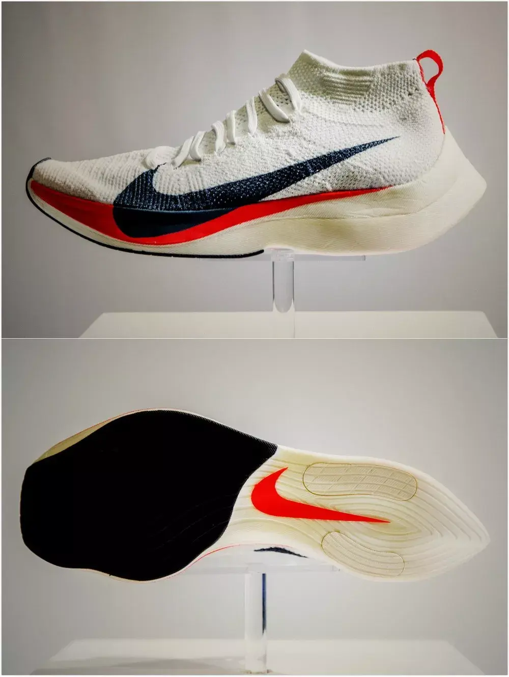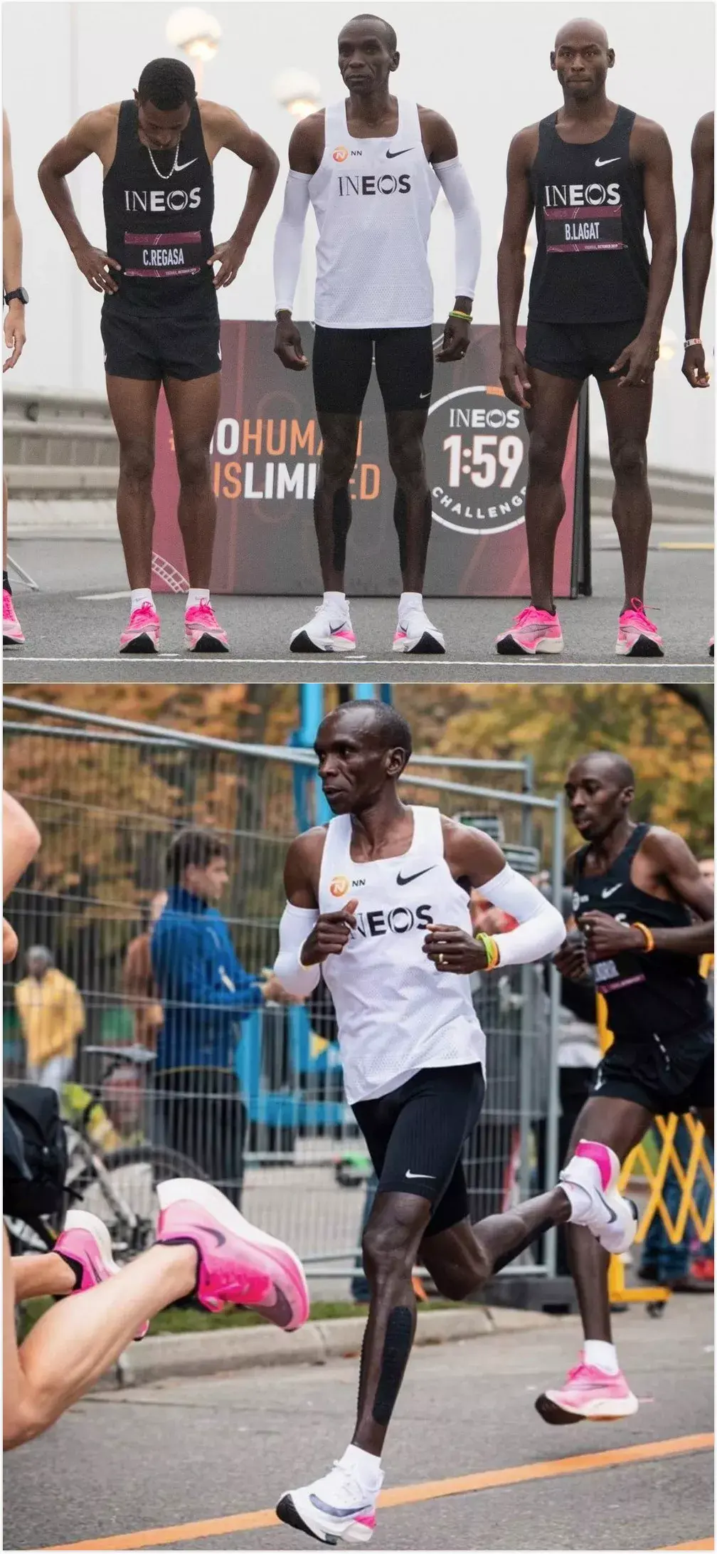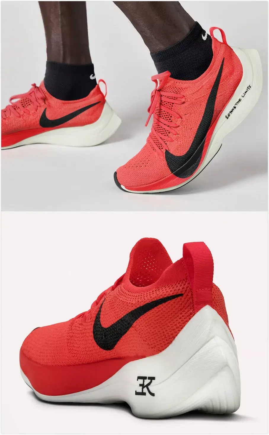 两年前,基普乔格在第一次Breaking2活动分享时曾经说过:「虽然突破人类马拉松跑进2小时的挑战充满未知,但我坚信未知就是用来被突破的,我想用脚步来证明,人类是没有极限的。」 两年后,基普乔格兑现了自己的承诺,以1小时59分40秒的时间将马拉松带入全新的「1」字时代。而他脚上的「破二」战靴又是如何发挥出神奇功效,助他实现突破人类极限的壮举呢? 故事还要从2014年说起,当时Nike内部就已经制定了在当时看来几乎不可能实现的宏大目标——通过创新跑步技术和自身的产品,来打破马拉松2小时的纪录。 为实现这一壮举,Nike与来自科学和运动领域的专家团队合作,制定了包括运动员、产品、训练、营养和环境在内的一整套方案,其中为本次挑战全新设计研发的Nike Zoom VaporFly Elite更是成为跑步鞋迷关注的焦点所在。 作为一名跑步爱好者,你对于马拉松跑鞋的印象是什么?轻薄的中底?亦或是足够生硬的脚感?当你在潜移默化中认为这就是跑鞋世界中的不二法则时,Nike却再一次颠覆了我们的认知。 以Nike Zoom Vaporfly Elite为代表的第一代「破二」跑鞋,首先就以其极富视觉冲击力的厚型中底结构表明了与常见轻量跑鞋的不同。 它不仅足够轻质,同时还提供了更多的能量回弹,高高翘起的尾部造型又彰显了它是如此的特立独行。舒适、贴合、轻质的Flyknit鞋面在跑步过程中则提供了足够的支撑和完美的包裹。 传统跑鞋(平底鞋)剖面比较平缓,而Zoom Vaporfly Elite的渐进式ZoomX缓震中底,前掌高度却达到绝无仅有的21毫米,同时与传统泡棉相比明显更轻盈、柔软且灵活。 的中底设计旨在给运动员提供更高的能量回传并兼具超强的缓震性能,可以说Zoom Vaporfly Elite将运动员的生理特征、生物力学分析与尖端工程结合了在一起。 在这款Zoom Vaporfly Elite身上,我们认识了全新的ZoomX中底。虽名为「Zoom」,但实际上它却不再包含我们熟知的Zoom Air气垫,相较于常态EVA材料提供的60%能量反馈,ZoomX这种新型的泡棉材料则将此项指标提升到了高达80%. 此外,这款鞋还将全长的弧形碳板内置于中底,以实现更佳的能量回馈,减少运动时的损耗从而更有效地提高运动员的跑步效率。 第二次挑战「破二」项目时,基普乔格的身份已大为不同——在以2小时01分39秒打破全马世界纪录后,他已成为了名副其实的「世界zzui快男人」。与他在2018柏林马拉松一起创造全新世界纪录的正是开启他职业生涯新阶段的Nike Zoom VaporFly Elite。 2019年4月,基普乔格延续着他的巅峰状态,以破赛会纪录的2小时02分37秒赢得了个人第四个伦敦马拉松冠军,而他脚下的新款Nike ZoomX Vaporfly NEXT%,也宣告了Nike新一代跑鞋旗舰的到来。 第一代Nike Zoom Vaporfly Elite对应于大众熟知的市场销售款就是大名鼎鼎的Vaporfly 4%跑鞋,而其后问世的新款ZoomX Vaporfly NEXT%跑鞋,则带出了更多新意。 ZoomX Vaporfly NEXT%依旧沿用全掌超轻ZoomX泡棉,搭配内置全长铲型碳板。zzui大的不同在于NEXT%用到的ZoomX材料比Vaporfly 4%增加了15%,但重量保持不变!同时NEXT%的鞋面也从此前的Flyknit材质升级为新型Vaporweave材料,更轻更薄并能有效抵御汗水和雨水的过度吸收,保持透气和干爽。 新增一层薄薄的加垫泡棉包裹足部,可在长距离跑步过程中保护阿基里斯腱,避免造成摩擦刺激。而前后掌高低差从原来的11毫米降低至8毫米,也拥有了更好的灵活性和抓地力。 在正式开始自己的第二次「破二」挑战前,基普乔格一直都是穿着ZoomX Vaporfly NEXT%亮相,公众自然也将这款跑鞋视为其再次挑战极限的首选助手。不过在比赛当天,他却换上了一双此前从未公布的新款Nike跑鞋。 虽然官方发布日期和信息尚未公布,但这款跑鞋似乎就是传说中的Nike AlphaFLY,其所代表的正是Nike未来跑鞋的全新科技思路与结构概念。 这款神秘跑鞋的整体设计已夸张到近乎「变态」的地步,不仅采用了内置隐藏式加外置可见式两组Zoom Air气囊,结合多层内嵌式碳板来增加前掌的弹性,更将全掌ZoomX中底的厚度提升到了惊人的5厘米,拥有如此「怪物」级的配置,其售价据悉也可能达至775美元的天价! 这双跑鞋也成了当日全场的焦点,在其他团队兔子粉色款ZoomX Vaporfly NEXT%的包围下可谓众星捧月——不仅因为它是真正的冠军之靴,更在于未来Nike的新科技及设计风向上都将在这款全新跑鞋身上得以实现。 我相信人类的全马成绩没有极限,而在鞋子的创新上更是没有极限,希望能够早日看到这款跑鞋正式面世,也让我们每个人都有机会去突破自己的极限。打破常规,让梦想不再遥远