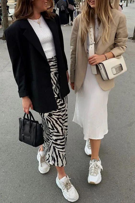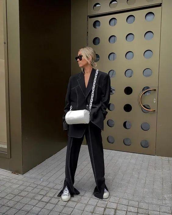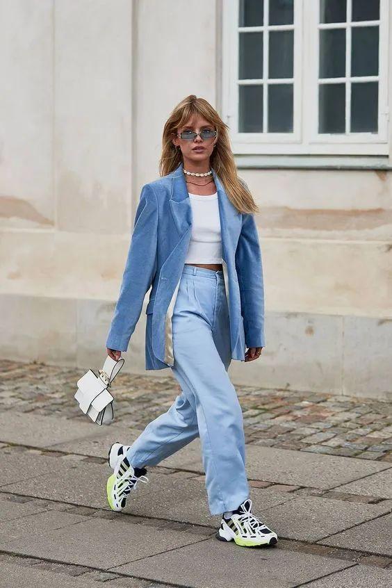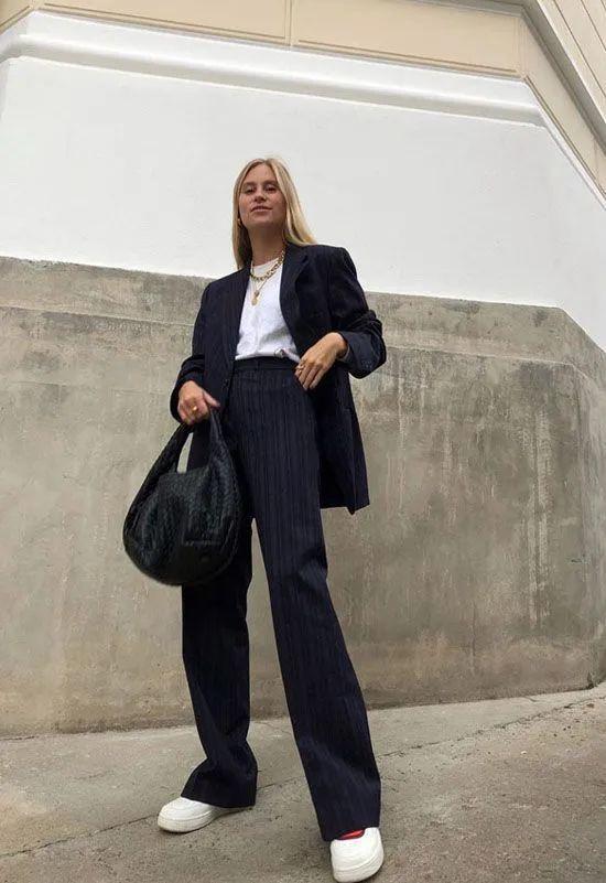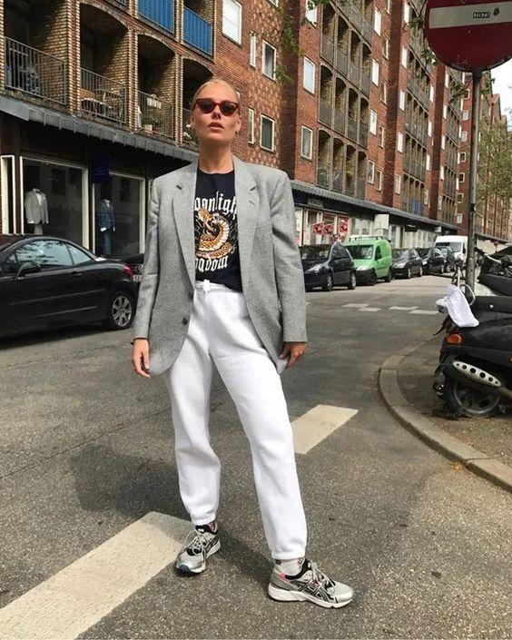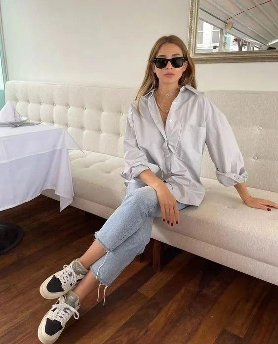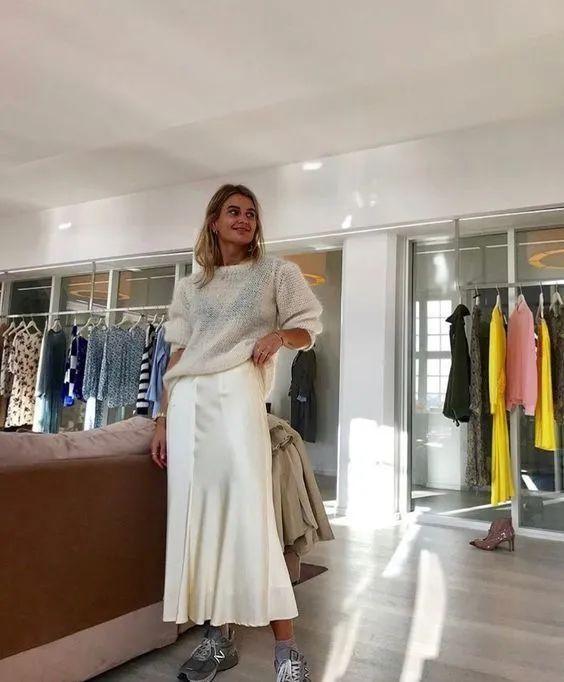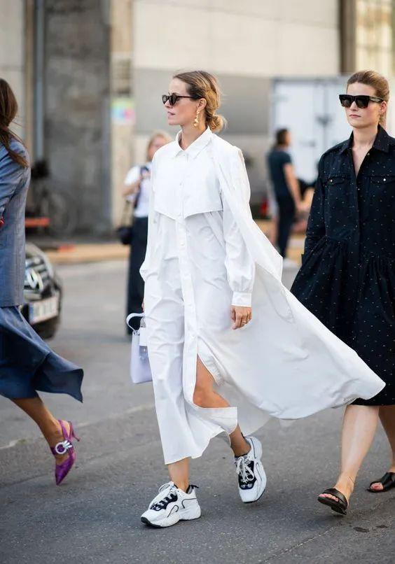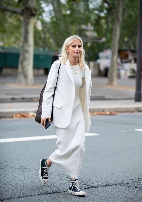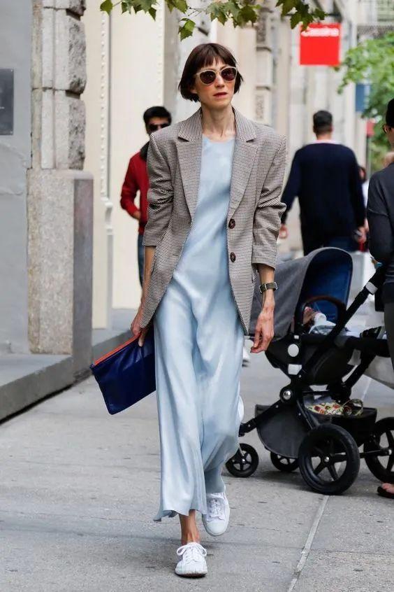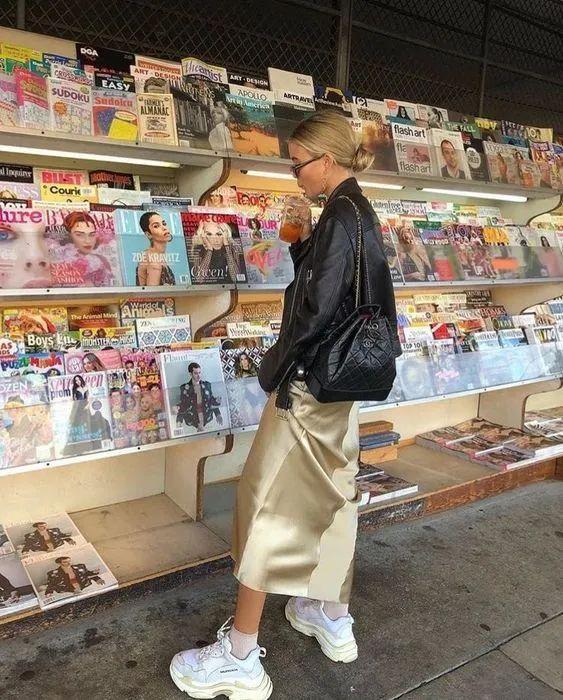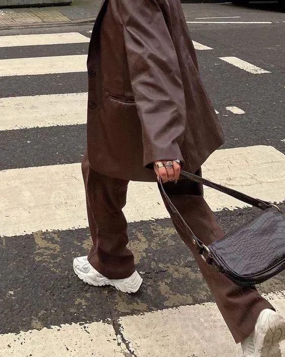 舒适又时髦, 运动鞋排在首选。 以前的运动鞋, 是为了长时间走路时的舒适感; 现在的运动鞋, 更是为了在任何场合给你舒适自如的自信感。 01 舒适优雅风 运动鞋+裙装 有层次的穿搭, 需要各种不同风格的单品来调和。 走路轻便自如的运动鞋 配上优雅的连衣裙, 不失女人味的同时, 又给整体造型多了一份俏皮。 初秋微凉的天气, 和长裙zzui为相配。 只露出一点点脚踝 又有初秋的气息。 运动鞋搭配缎面连衣裙, 给造型加入了轻松感, 优雅和舒适两不误, 是通勤穿搭不错的选择。 半裙高级的质感, 和款式的简单大方, 搭配起运动鞋, 多了一份轻松和从容。 针织面料的半裙, 让整套搭配多了一丝慵懒, 更有温暖的感觉。 这个秋天试试黑白灰以外的穿搭。 运动鞋和服装上的色彩呼应, 会碰撞出很和谐的彩色搭配look。 02 随性帅气风 运动鞋+休闲裤 选择运动鞋的原因, 早已不仅仅是因为它的舒适, 而是因为运动鞋的百搭。 当你缺少穿搭灵感时, 一双运动鞋会给你带来意想不到的惊喜。 运动鞋和牛仔裤本来就是绝配, 再结合衬衫的百搭属性, 无论怎么穿都能拥有时髦的造型。 近两年流行的老爹鞋, 复古味十足, 鞋底的厚度, 可以达到自然的增高效果。 在视觉上拉长腿型。 03 混搭风 西装+休闲裤+运动鞋 有运动鞋带入的混搭风, 是日常zzui容易借鉴的穿搭。 西装和运动风的搭配, 让你在classic和sporty中间找到完美的平衡。 西装和牛仔裤的完美组合, 搭配运动鞋,可以让你出入任何场合。 挽边的九分牛仔裤, 露出一截袜子,也是搭配中的小心机。 拖地的阔腿长牛仔裤, 会让腿看起来更修长显高。 搭配阔腿运动裤的时候, 可以选择非板鞋的运动鞋, 看起来搭配更有层次感。 收裤脚的运动裤让整套搭配更潇洒。 纯白色的运动鞋, 和西装材质的阔腿裤相配, 给人干干净净的风格感, 潇洒又帅气。 04 大女人风 西服套装+运动鞋 运动鞋有的休闲男孩子气, 与英朗潇洒的西装相配, 营造出满满的大女人风。 运动鞋轻松为搭配注入运动气息, 同时又不失西装的正式感。 巧妙的利用配饰也是搭配出彩的关键, 金属感的项链和戒指, 都是日常凹造型的利器。 运动鞋的潇洒, 自信美丽的女人zzui懂。如果想要找一双鞋子可以穿遍一年四季,