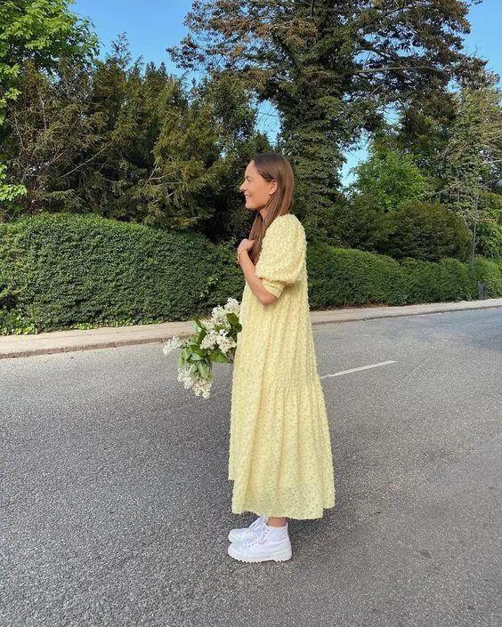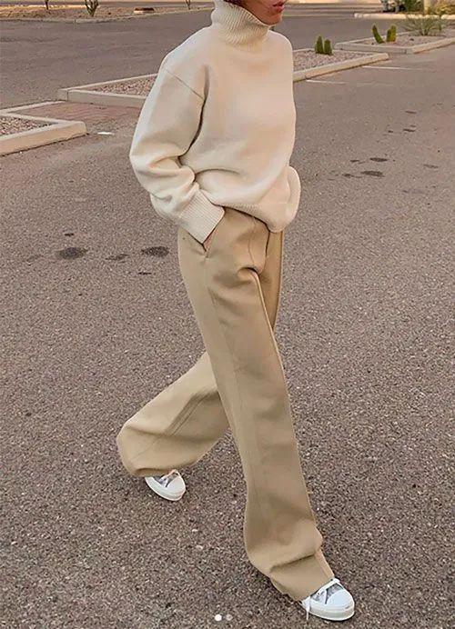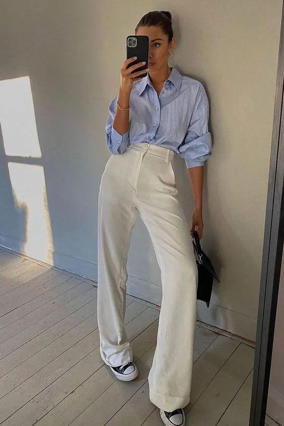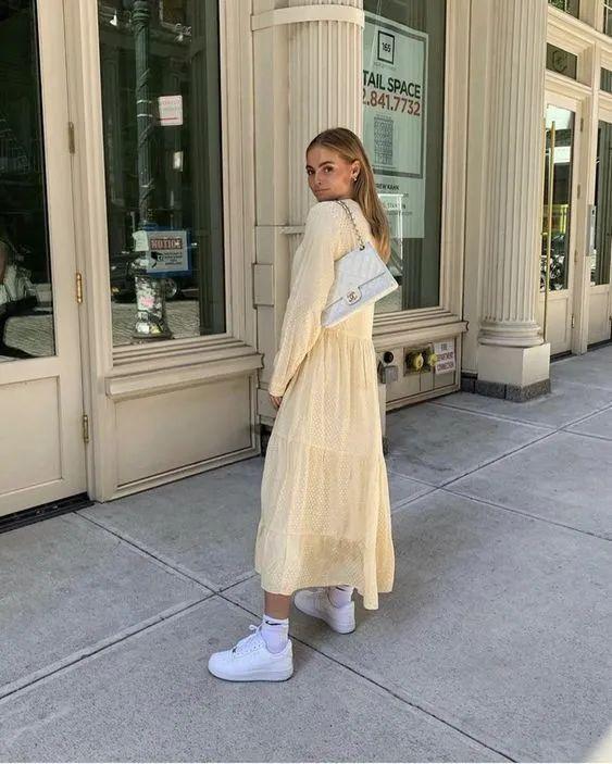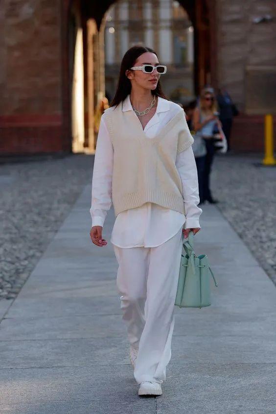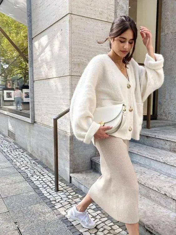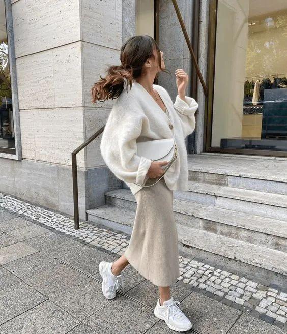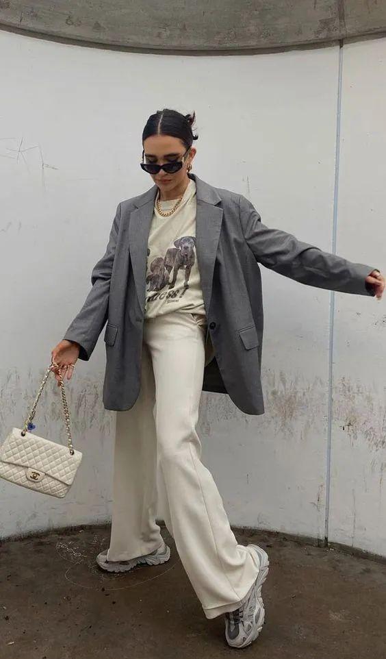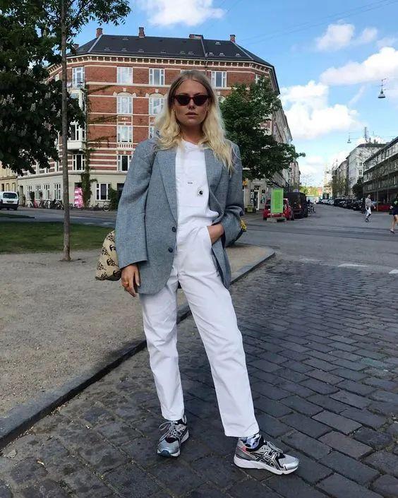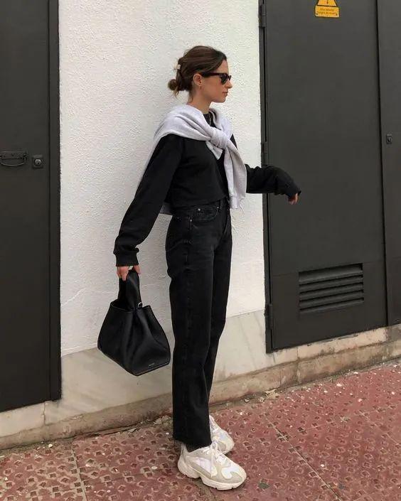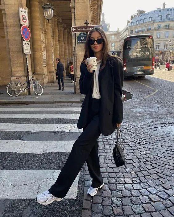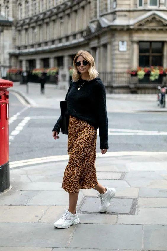 舒适又时髦, 运动鞋排在首选。 以前的运动鞋, 是为了长时间走路时的舒适感; 现在的运动鞋, 更是为了在任何场合给你舒适自如的自信感。 01 舒适优雅风 运动鞋+裙装 有层次的穿搭, 需要各种不同风格的单品来调和。 走路轻便自如的运动鞋 配上优雅的连衣裙, 不失女人味的同时, 又给整体造型多了一份俏皮。 初秋微凉的天气, 和长裙zzui为相配。 只露出一点点脚踝 又有初秋的气息。 运动鞋搭配缎面连衣裙, 给造型加入了轻松感, 优雅和舒适两不误, 是通勤穿搭不错的选择。 半裙高级的质感, 和款式的简单大方, 搭配起运动鞋, 多了一份轻松和从容。 针织面料的半裙, 让整套搭配多了一丝慵懒, 更有温暖的感觉。 这个秋天试试黑白灰以外的穿搭。 运动鞋和服装上的色彩呼应, 会碰撞出很和谐的彩色搭配look。 02 随性帅气风 运动鞋+休闲裤 选择运动鞋的原因, 早已不仅仅是因为它的舒适, 而是因为运动鞋的百搭。 当你缺少穿搭灵感时, 一双运动鞋会给你带来意想不到的惊喜。 运动鞋和牛仔裤本来就是绝配, 再结合衬衫的百搭属性, 无论怎么穿都能拥有时髦的造型。 近两年流行的老爹鞋, 复古味十足, 鞋底的厚度, 可以达到自然的增高效果。 在视觉上拉长腿型。 03 混搭风 西装+休闲裤+运动鞋 有运动鞋带入的混搭风, 是日常zzui容易借鉴的穿搭。 西装和运动风的搭配, 让你在classic和sporty中间找到完美的平衡。 西装和牛仔裤的完美组合, 搭配运动鞋,可以让你出入任何场合。 挽边的九分牛仔裤, 露出一截袜子,也是搭配中的小心机。 拖地的阔腿长牛仔裤, 会让腿看起来更修长显高。 搭配阔腿运动裤的时候, 可以选择非板鞋的运动鞋, 看起来搭配更有层次感。 收裤脚的运动裤让整套搭配更潇洒。 纯白色的运动鞋, 和西装材质的阔腿裤相配, 给人干干净净的风格感, 潇洒又帅气。 04 大女人风 西服套装+运动鞋 运动鞋有的休闲男孩子气, 与英朗潇洒的西装相配, 营造出满满的大女人风。 运动鞋轻松为搭配注入运动气息, 同时又不失西装的正式感。 巧妙的利用配饰也是搭配出彩的关键, 金属感的项链和戒指, 都是日常凹造型的利器。 运动鞋的潇洒, 自信美丽的女人zzui懂。如果想要找一双鞋子可以穿遍一年四季,