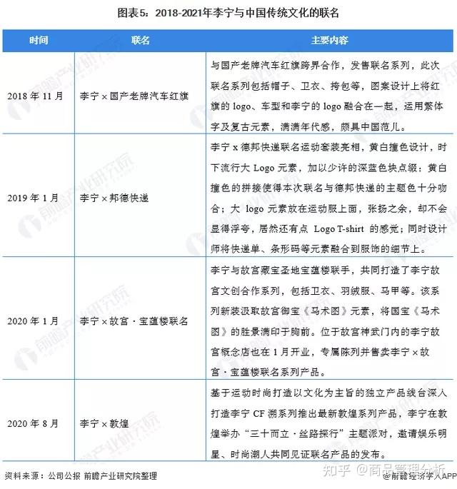 运动服饰行业主要上市公司:李宁(http://02331.HK)、安踏体育(http://02020.HK)、361度(http://01361.HK)、特步精品(http://01368.HK)等。 本文核心观点:运动品牌市场占比、中国运动鞋品牌力指数、安踏联名系列、李宁联名系列、特步天猫旗舰店战绩 1、安踏市占率位居第三,占比直追阿迪达斯 在2020年,尽管阿迪达斯和耐克还是占据我国运动品牌的市场的大部分市场,但是我国本土品牌的市占率紧随其后,且开始逐渐增加。参照欧睿统计,2020年运动品牌的市占率榜单上,耐克以25.6%的数据高居榜首,阿迪达斯紧随其后为17.4%,国内龙头品牌安踏以15.4%的市场份额位列第三,李宁、特步和361度分别为6.7%、4.7%和2.6%。 招商证券研报显示,2020 年上半年,斐乐在营收方面的贡献占总收入的 48.8%,已经超过了安踏主品牌的 46%;2018-2020 年,斐乐的毛利率高达 70%,而安踏主品牌的毛利率仅为 40%。 有了并购斐乐成功的案例,安踏随后发起了多次品牌并购计划。2015 年收购英国户外休闲、登山运动品牌 Sprandi,2016 年收购日本滑雪户外品牌迪桑特,2017 年收购童装品牌小笑牛 ( Kingkow ) 。 ——收购芬兰体育巨头 Amer Sports;这是中国体育用品行业zzui大的跨国收购案,收购价格为 46 亿欧元 ( 按当时汇率计算合人民币约 360 亿元 ) ,收购结束后安踏集团持有 57.85% 的股权,成为 Amer Sports 的主控方。 Amer Sports 旗下拥有始祖鸟、萨洛蒙、威尔逊、阿托米克、颂拓等 13 个知名户外运动品牌,且其产品线覆盖全面,在高尔夫、高山滑雪、越野滑雪、滑板、越野跑装备、潜水等多个细分领域位居前列。 除了从市占率的角度出发看中国本土品牌的地位在逐渐提升,还可以从C-BPI品牌排名中发现,除了精品运动品牌巨头耐克与阿迪达斯,运动鞋品牌力TOP5中剩下三位均为本土品牌,且特步的品牌力从2020年开始上升,超过了乔丹,而在次之前,特步从2011-2019年的品牌力指数一直排名第七,2020年上升2位,达到第五名,2021年继续保持。 2、安踏花式联名开拓市场 近年来,安踏与各种IP联名,涉猎各类行业,各种联名鞋款都带着不同的设计理念,鞋款配色也开始变得越来越花俏,这也能算是安踏的一种营销方式。其中zzui为出名的就是与可口可乐、故宫以及六神的联名系列了。安踏很好的利用了跨界联名引爆潮流圈热度,同步将大货款引入大众视线,联名款与灵动轻松的大货通常款进行联合宣传。 从中国市场的运动鞋品牌市占率来看,尽管运动鞋市场耐克、阿迪达斯仍占据主导地位,2020年市占率分别达32.5%和15.8%,但是安踏体育的成绩也不容小觑,市占率提升到10.4%。 安踏线上收入超全球龙头品牌;自天猫平台的销售流水数据显示,2021 年 1-7 月安踏集团在天猫行业类目的总流水超越包括耐克与阿迪在内的所有精品品牌,首次代表中国品牌登顶。 3、李宁成为当之无愧的“国潮”代表 根据李宁集团发布的中期财报,截至2021年6月底,公司营业收入同比增长65%至101.97亿元,这是该公司半年营收首破百亿大关。期内净利润同比大涨187.2%,达到19.6亿元。经营杠杆增强,带动经营利润率上升10.4个百分点至24.9%。 从行业发展来看,自2018年2月纽约时装周走秀后,“国潮”便成为李宁重要的标签。李宁以“悟道”为题强势精品屏纽约时装周的那一刻起,国潮元年正式开启,而李宁则名正言顺的扛起了国潮的大旗,成为国潮标杆。 2020年我们依然能够看到众多传统文化元素应用在李宁设计及产品中,而且李宁逐渐通过搭建场景为品牌赋予更多文化内涵,延伸产品故事。 4、特步联名本土文化 利用联名来获取更多的关注的方法不止安踏和李宁,特步也加入联名大军。2021年初,另一本土运动品牌特步也联名少林寺,将这一独特的文化符号转化成年轻一代的语言,让品牌以全新的面貌呈现在消费者面前。本土品牌能够敏锐地抓住文化自信的信号,充分发挥自身精神内核的优势在本土品牌回归大众视野及对话新兴消费群体的进程中示乏不可没的。 2021年5月15日,在特步的天猫超品日上发布的特步少林新品系列在三日内于官方旗舰店上成交额突破6000万,位居同期运动鞋服行业销售额榜首,特步官方旗舰店的会员增长飙升2.38倍,Z世代人群资产提升1.05倍。