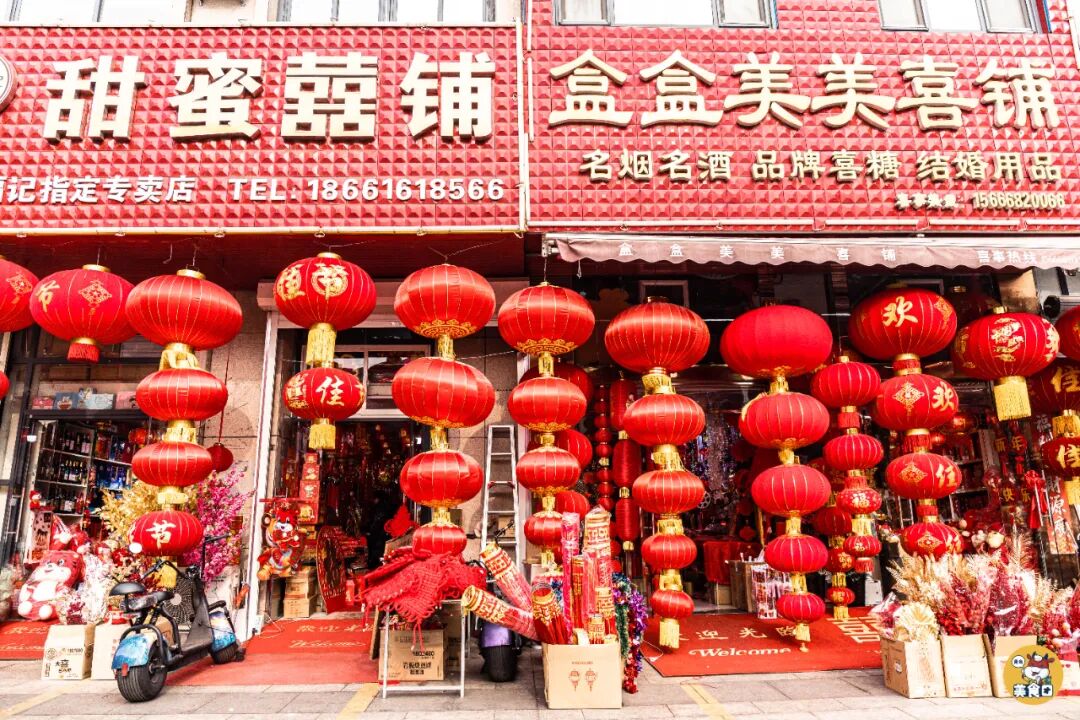 顺应节日氛围,每年临近春节前一个月,结婚用品就先收起来,福字春联灯笼等喜庆的元素铺满整个店面,满眼望去都是红红火火。(不建议这个时候来买结婚用品)