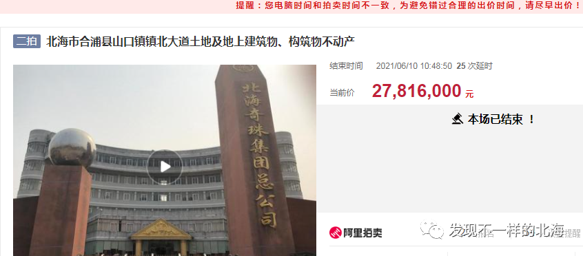 另外,位于山口镇的奇珠集团总部基地,去年经过两次拍卖后,最终以27816万元成功拍卖出去。