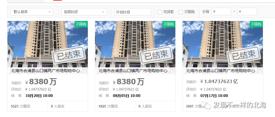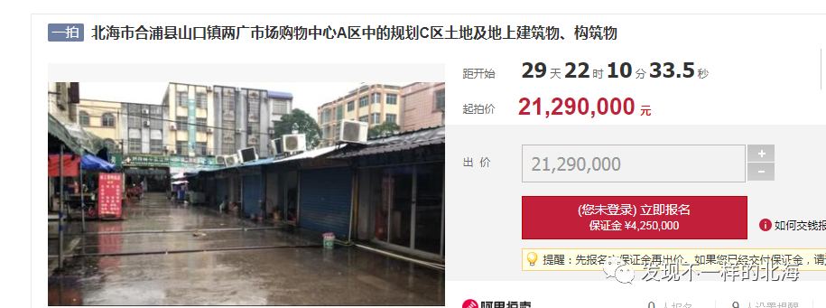 北海合浦县山口镇的两广批发市场被拍卖了,起拍价一亿多元说到合浦县山口镇的两广综合批发市场,估计合浦人,尤其是山口周边乡镇的人,无人不知无人不晓,两广综合批发市场,于2002建成开业,曾经是西南地区最大的综合批发市场,随着两广市场的开业,周边的白沙镇、公馆镇以及博白的龙潭镇、湛江的高桥镇等居民都喜欢去山口逛街了。除了市场大外,两广综合批发市场还比较特别,主要是其跟郑琦和北海奇珠集团有关。