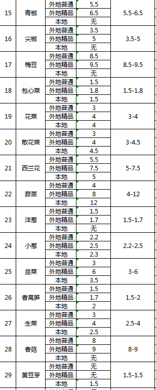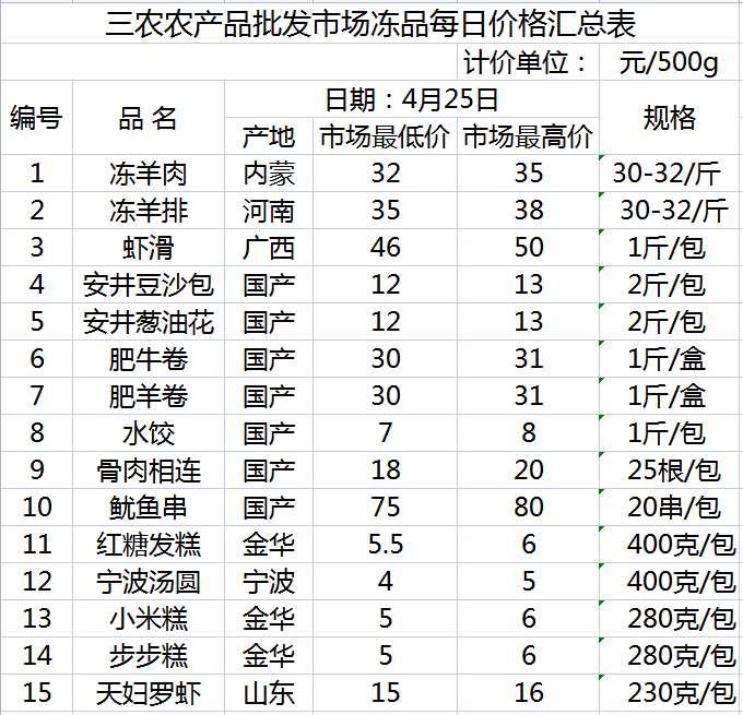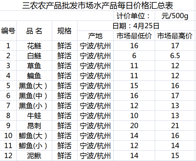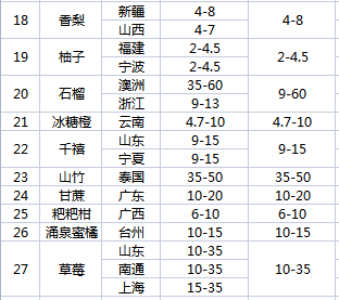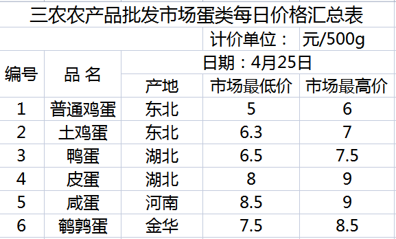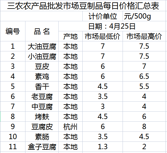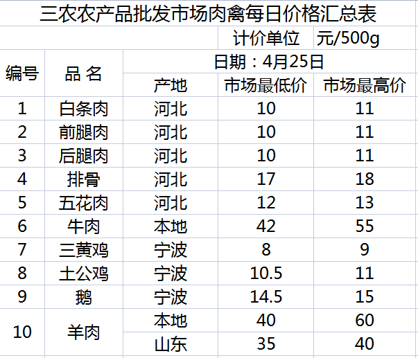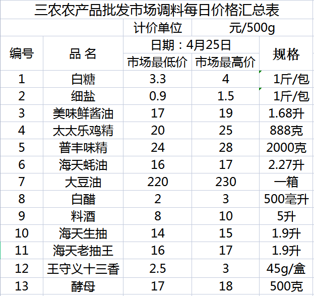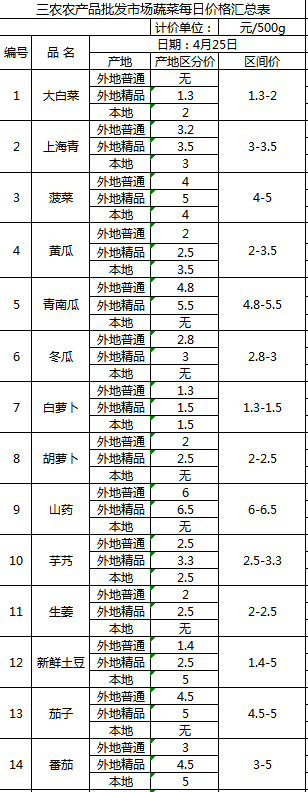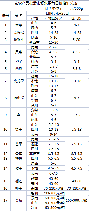 三农农产品批发市场每日生鲜价格指数公布(4月25日)