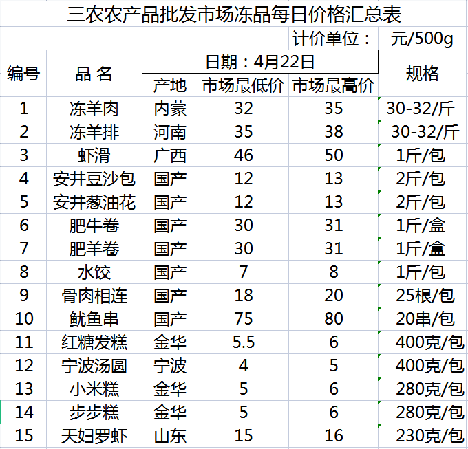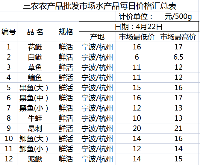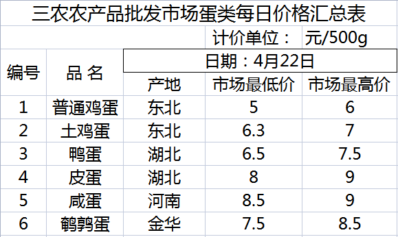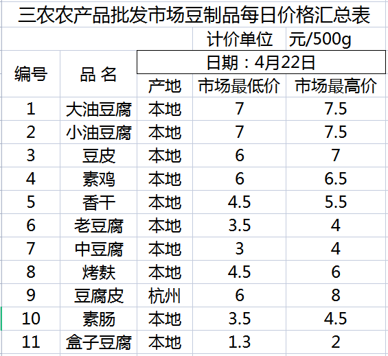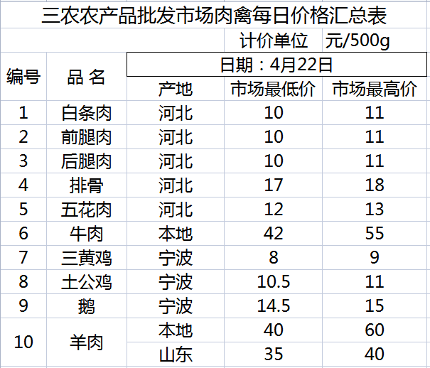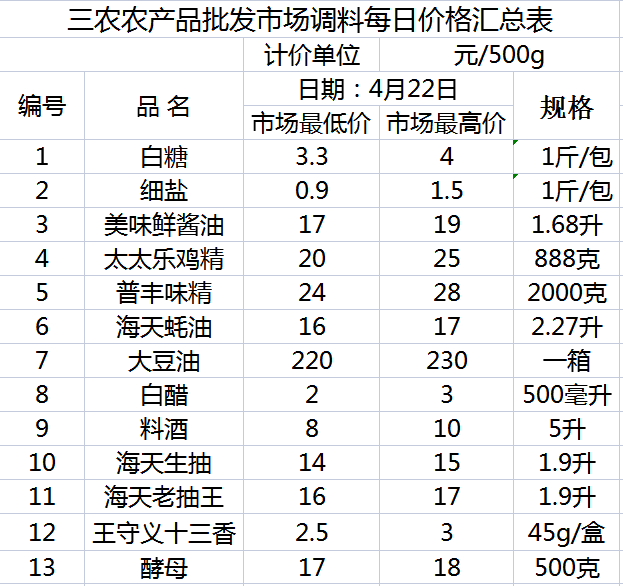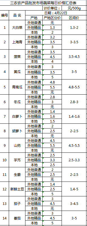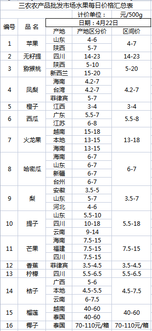 三农农产品批发市场每日生鲜价格指数公布(4月22日)