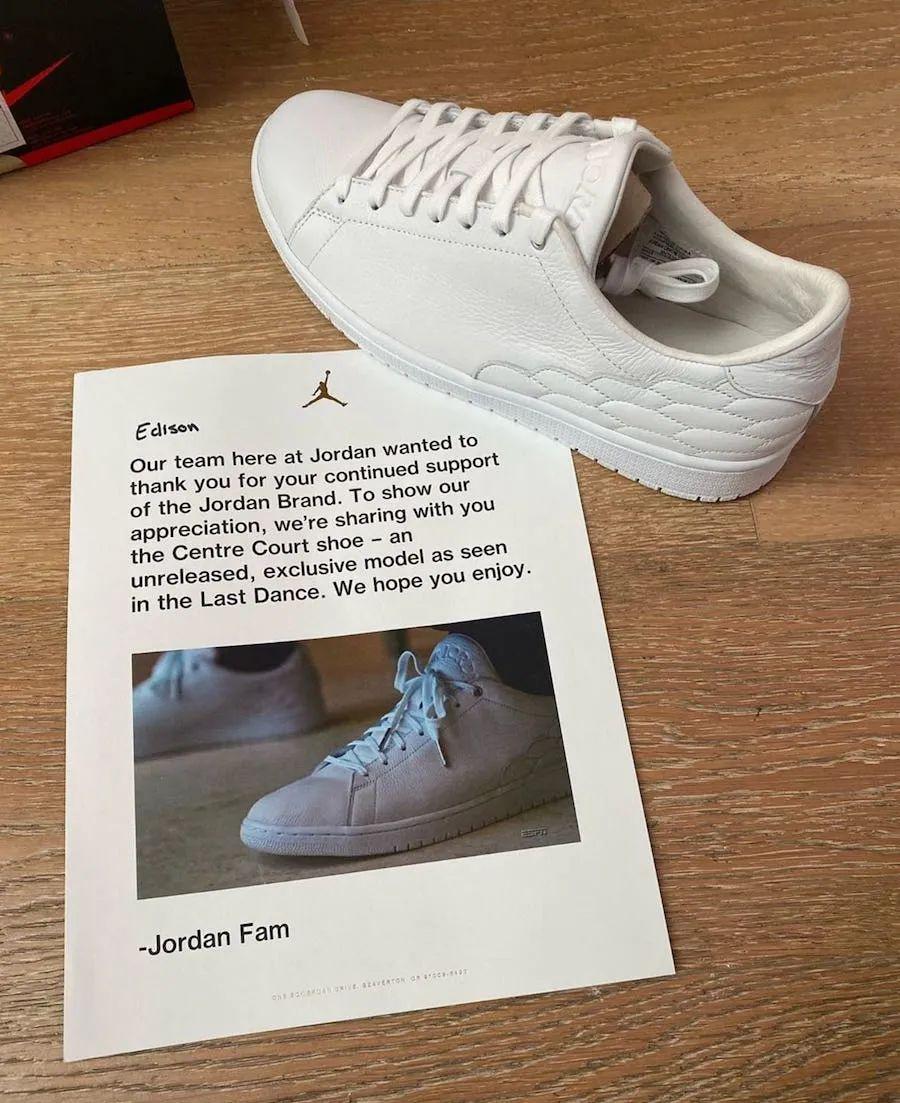 谈及Air Jordan 1 Centre Court诞生的缘由,暨当Michael Jordan来到Nike总部的时候,Jordan设计团队展示了一些为他专属打造的运动生活鞋款手稿。众所周知的是,Michael Jordan本人十分钟爱Air Jordan 1。而当他看到这双鞋的第一眼便立即表达了对它的喜爱,并要求团队首先制作一双纯白配色。这就是在《The Last Dance》中亮相的那双Air Jordan 1 Centre Court。