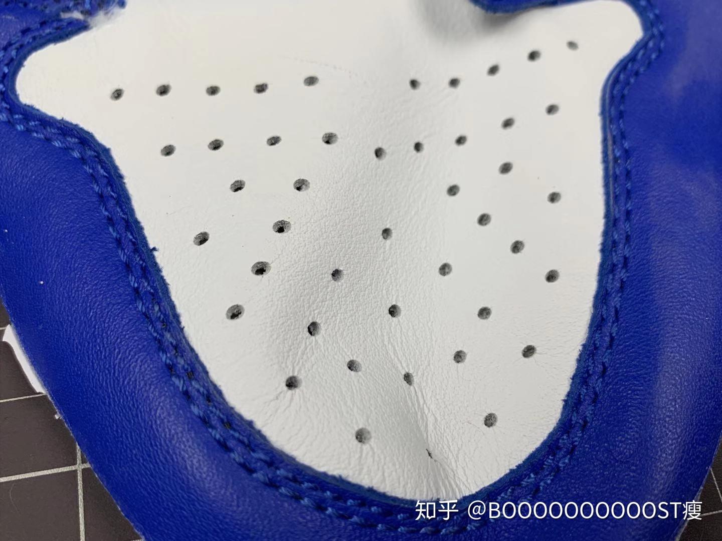 我们对比过“快船体育”中的AJ1拆解细节,虽然文章中并没有对鞋头部分做出细节图,但是看起来并没有区别。