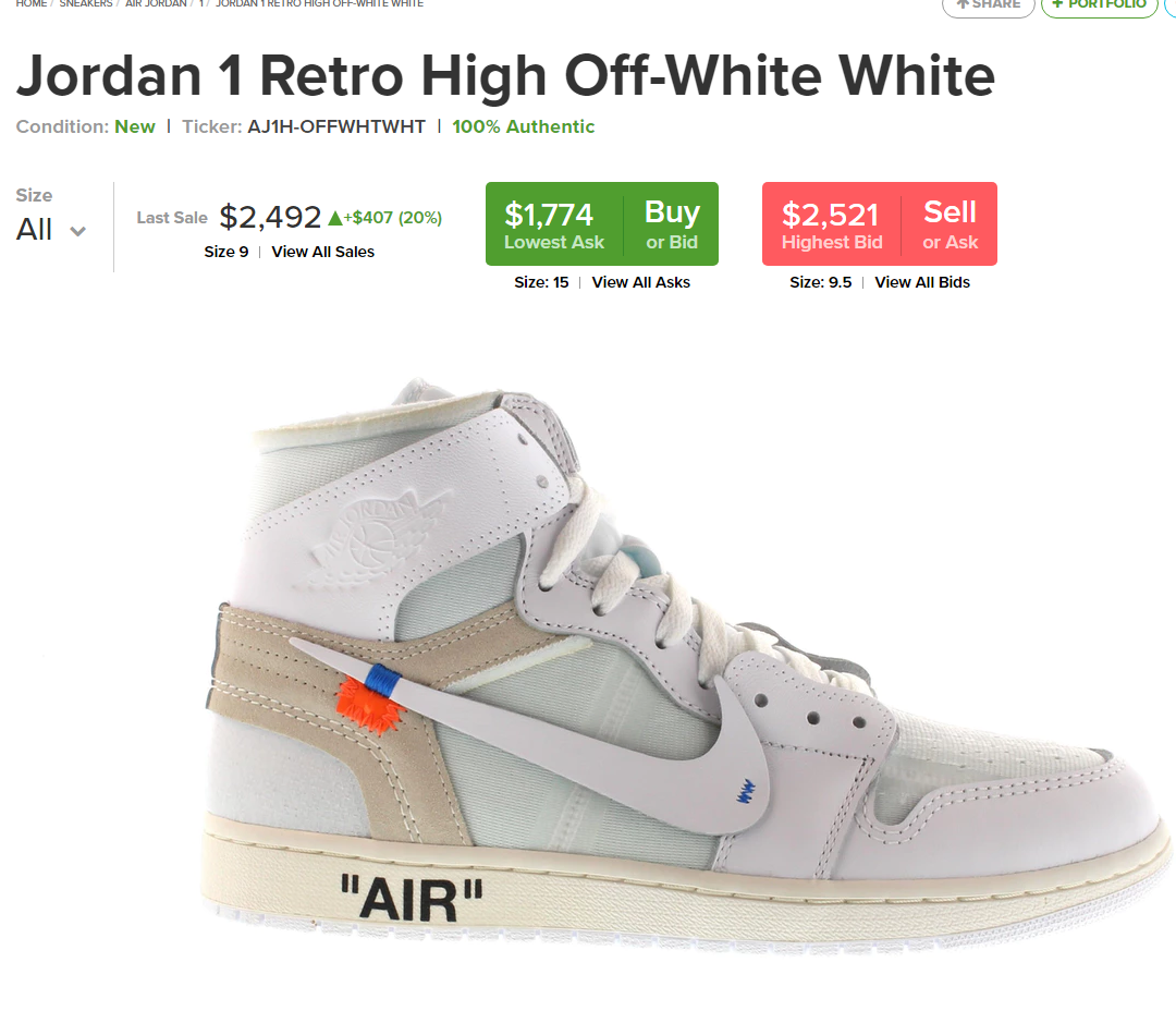 他的脑海里浮现出了一双很喜欢的鞋 OFF-WHITE x Air Jordan 1 的纯白版本