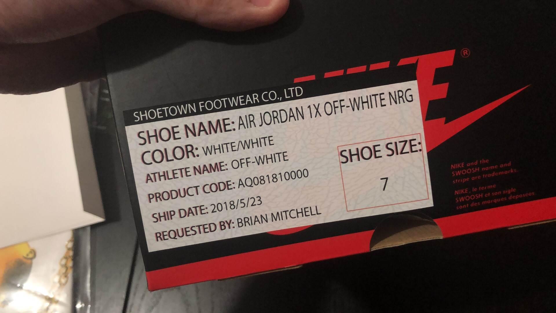美国橄榄球运动员Brian 向Nike 定了一双OFF-WHITE x Jordan 1 纯白,