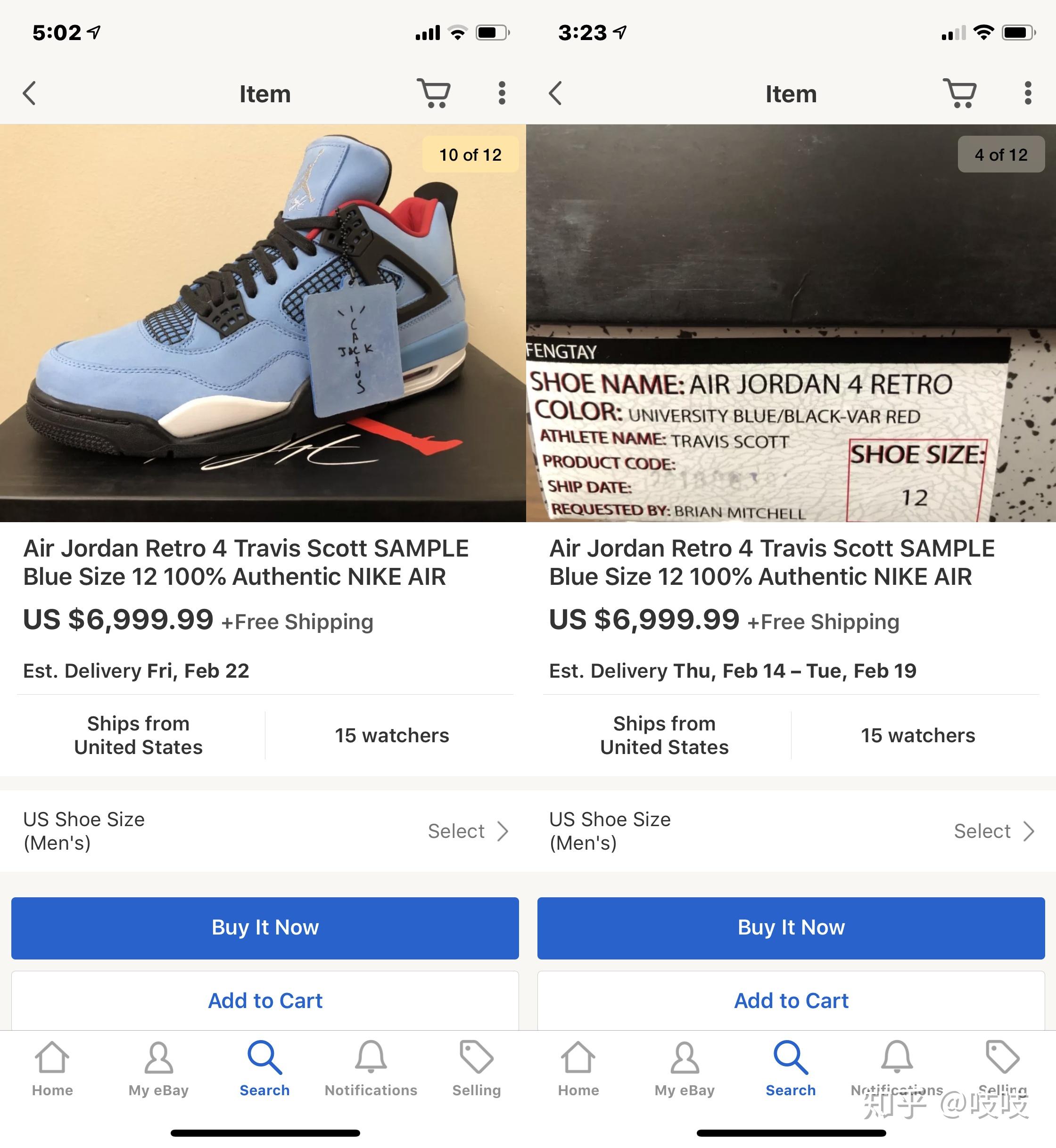 这是在Ebay上正在销售的另外两双样品鞋,都是出于这位产品经理