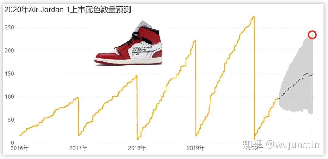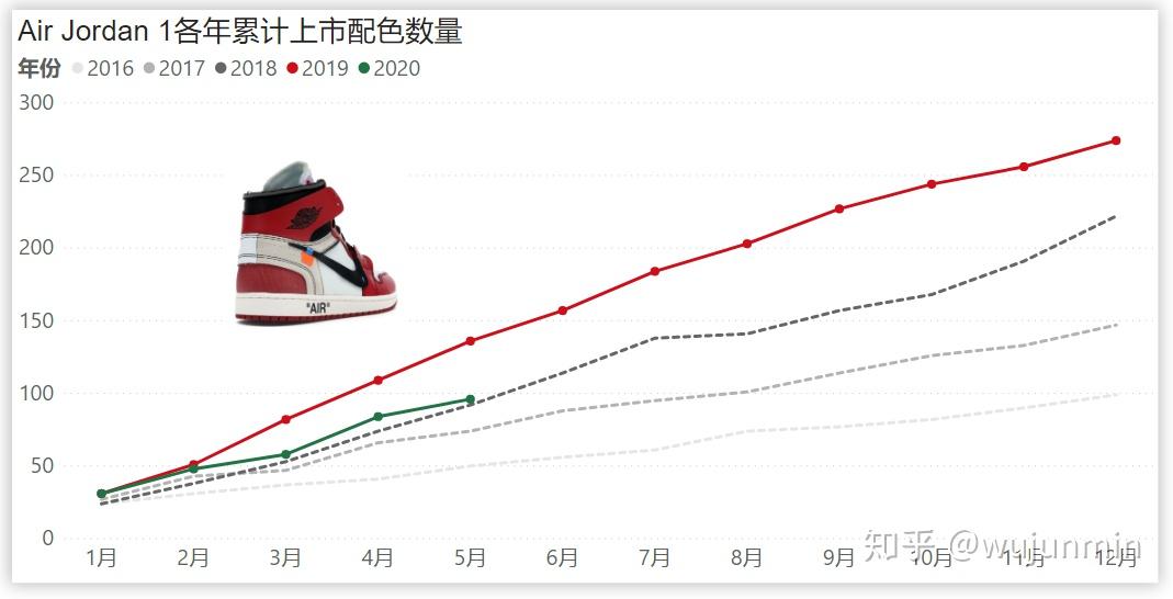 预测这种事情,被打脸的概率很大,但忍不住尝试一把。我猜2020年Air Jordan 1总共会有235个配色上市(以StockX产品资料为准)。