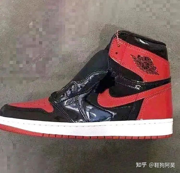且仔细看,这次的漆皮比较接近19年的AJ1猪油扣碎。