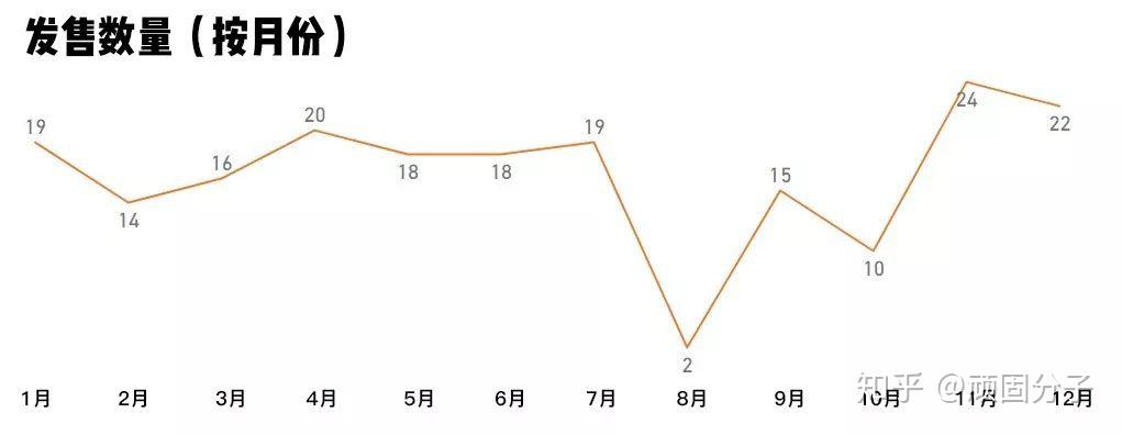 通过StockX的记录,能够看出除了去年8月仅有2款AJ1问世外,其他月份的发售数量还是相对平均的。而11月与12月对应欧美地区感恩节与圣诞节的销售旺季(大陆地区的双11与双12也许也占有一定比例的因素),在数量上则更醒目一些。