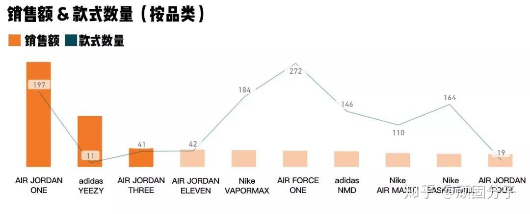 然而从销售额来看,197款AIR JORDAN 1累计在StockX上销售超过30万双,累计金额高达近9200万美元,是AF1的六倍还多。
