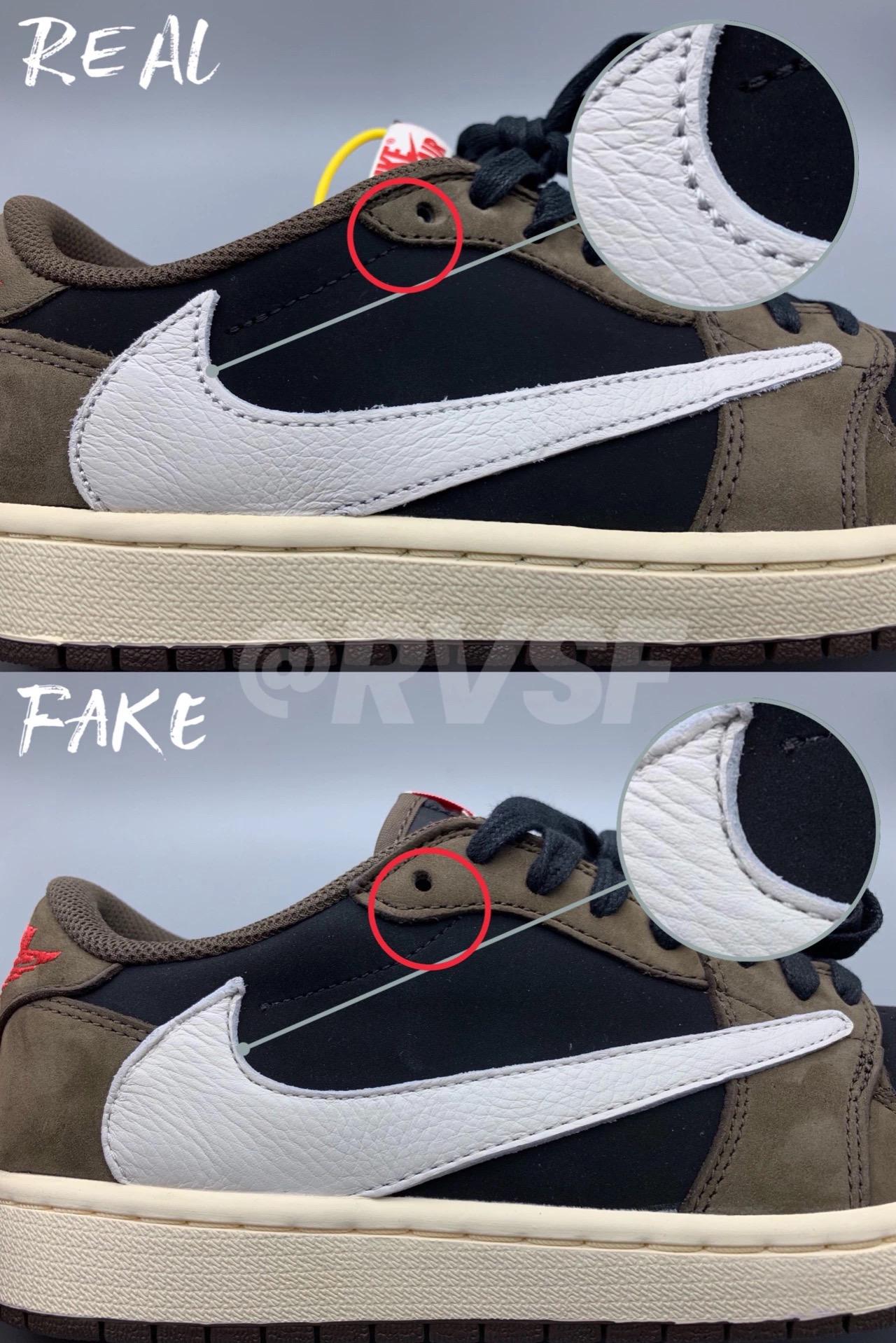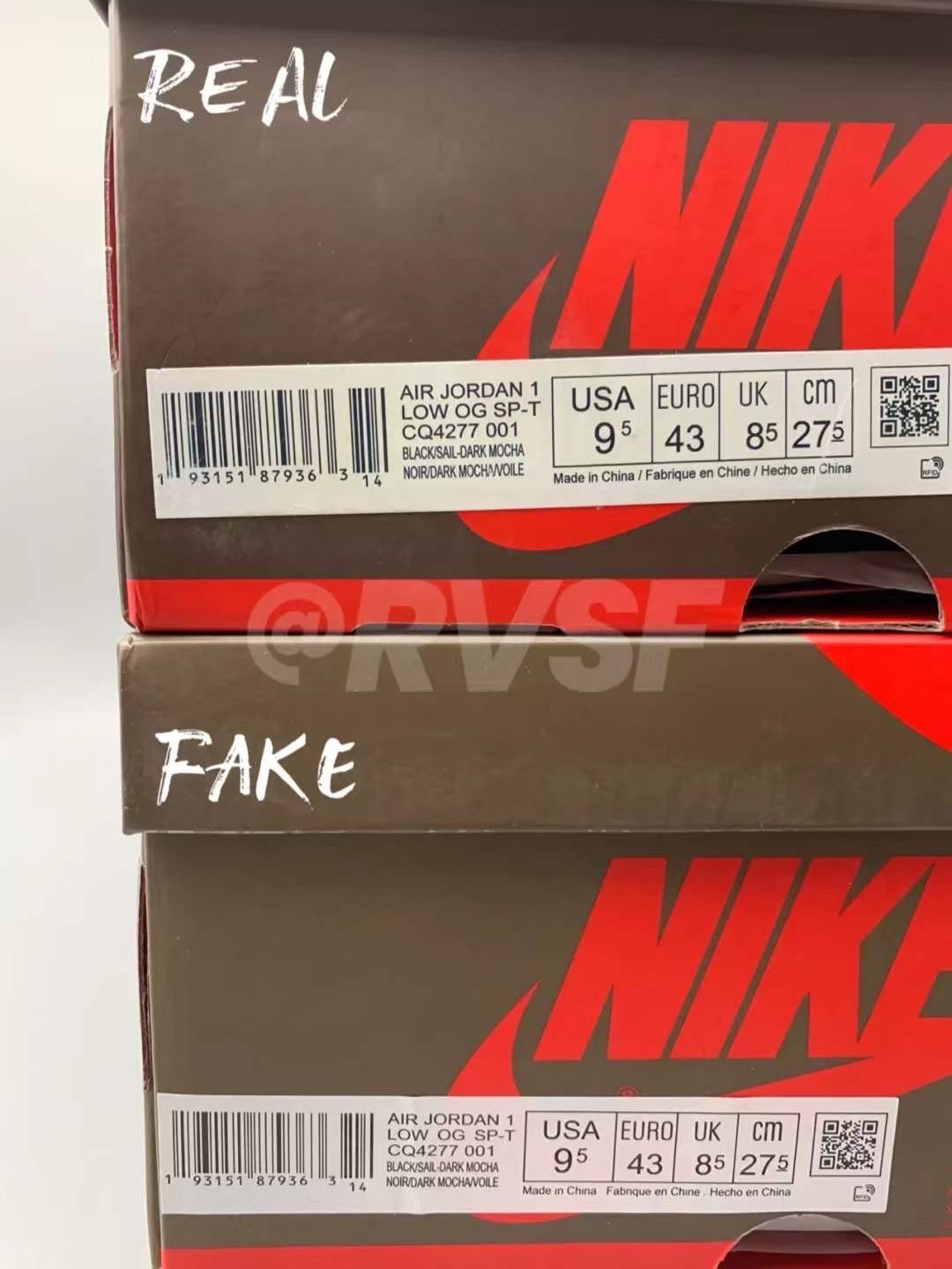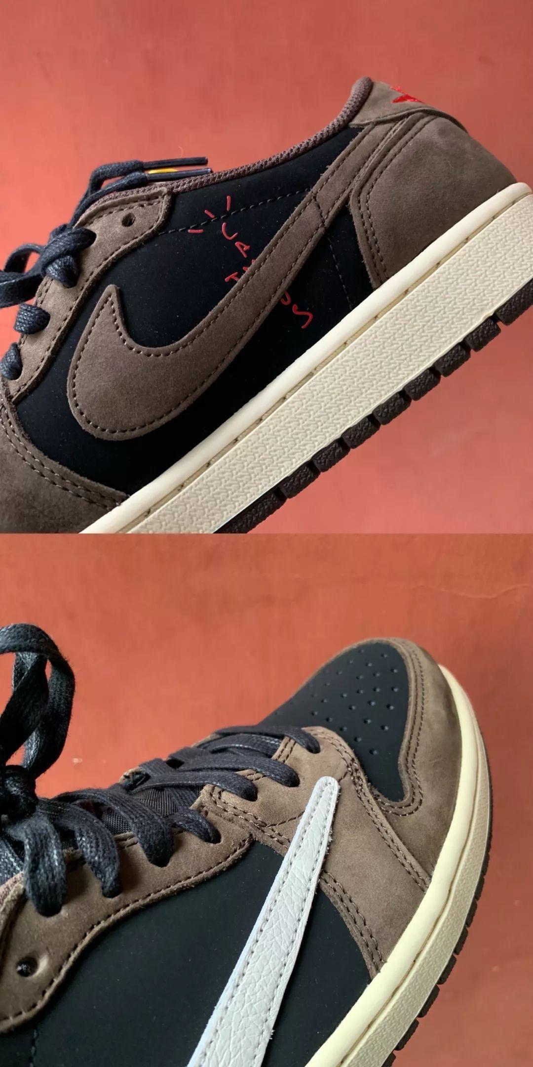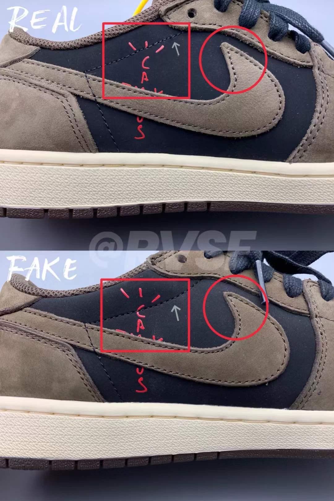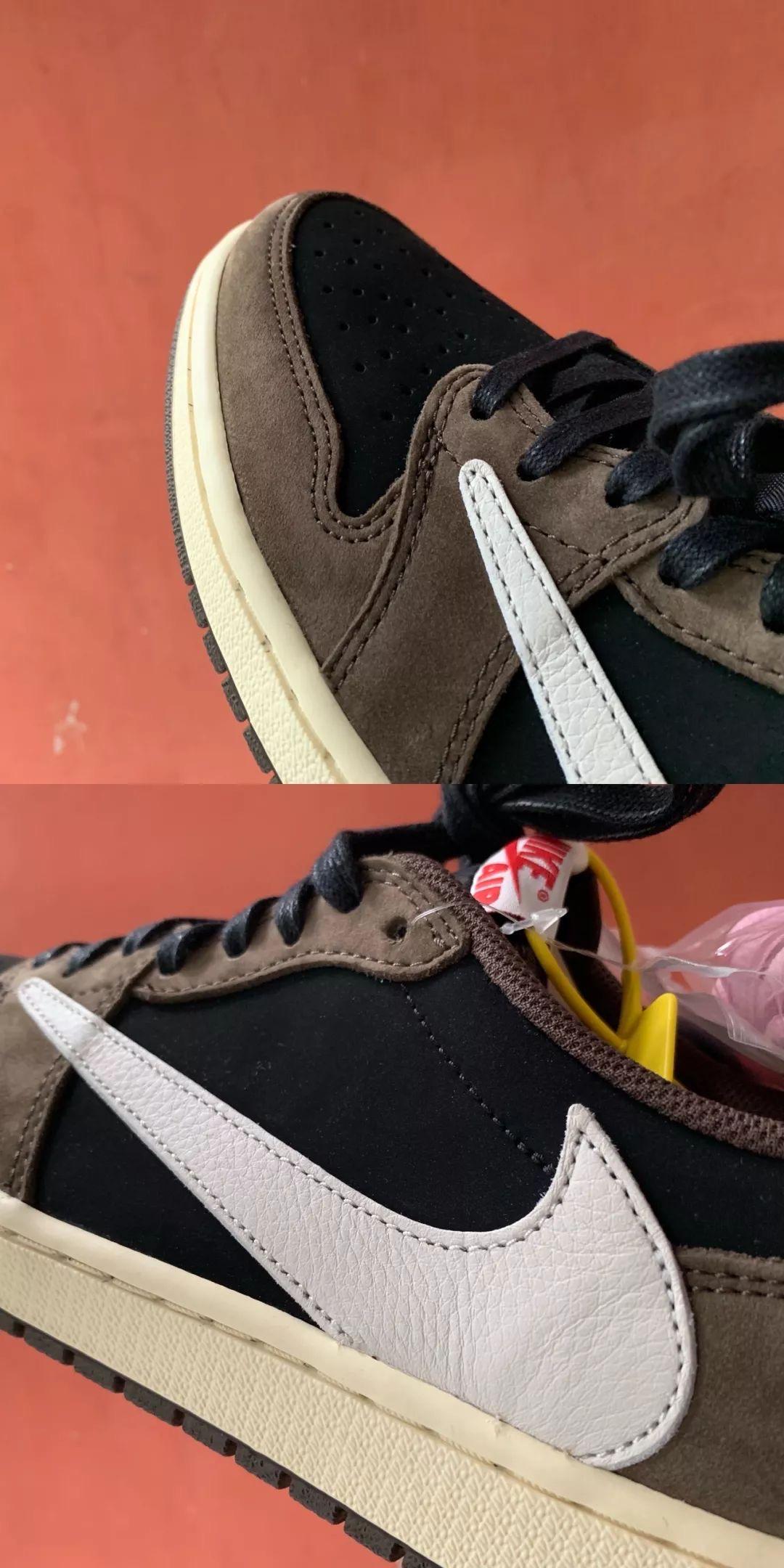 aj1烟灰小迪奥莆田 倒钩低帮 Travis Scott x Air Jordan 1 Low 真假对比