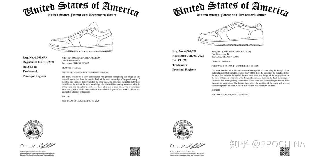 但是直到最后一天,才有Vans的律师提出了对这三个版本提出延期申请,从而又获得90天时间来反对这三项申请,但最终Vans律师在90天内没有提出异议,使得这三件商标最终获得批准。如果仔细观察,耐克获得的三件商标中,鞋上均没有Swoosh,这无疑增强了耐克维权的范围,即使不带耐克标志性的“对钩”标志的鞋,只要外貌元素和"Air Jordan 1"相似,一样可以被耐克起诉侵权。