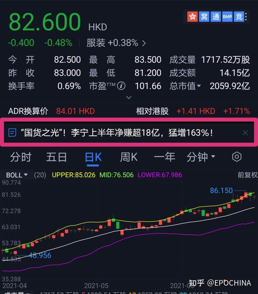 中国民族品牌李宁、安踏市场份额迎来高速增长。