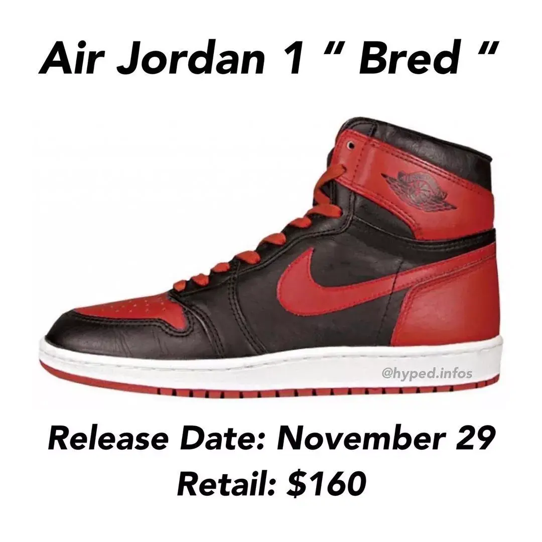 此前一直传出今年年底会复刻这双AJ1黑红,但一直没有一个比较确切的日期,大家对这双鞋的期待值一涨再涨,一度带着此前版本的AJ1黑红的二级市场价格一起飙升,终于在近期,海外球鞋曝光媒体爆料:这双Air Jordan 1“Bred”即将在今年11月29日进行复刻!