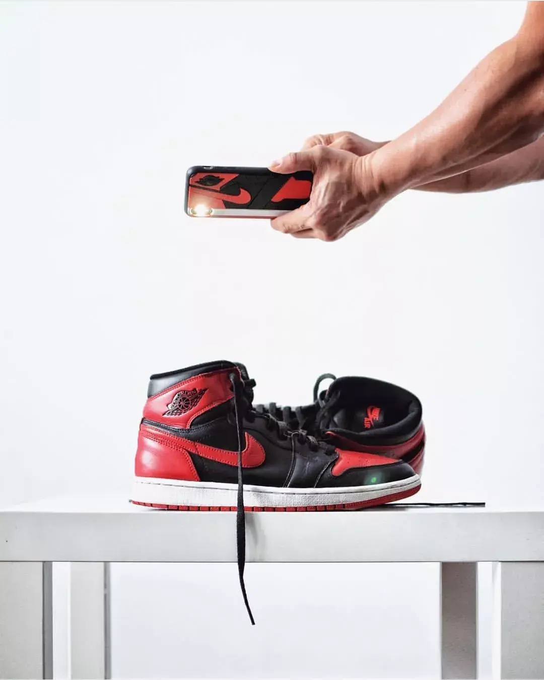 提到这双“Bred”就不得不说到它背后的故事,85年的那一次禁穿风波,其实当时帮主上脚的其实是Nike Air Ship而并非Air Jordan 1,而后Nike就借着这个主题为帮主拍摄了一条广告,用以推广他们的新款Air Jordan 1黑红配色。
