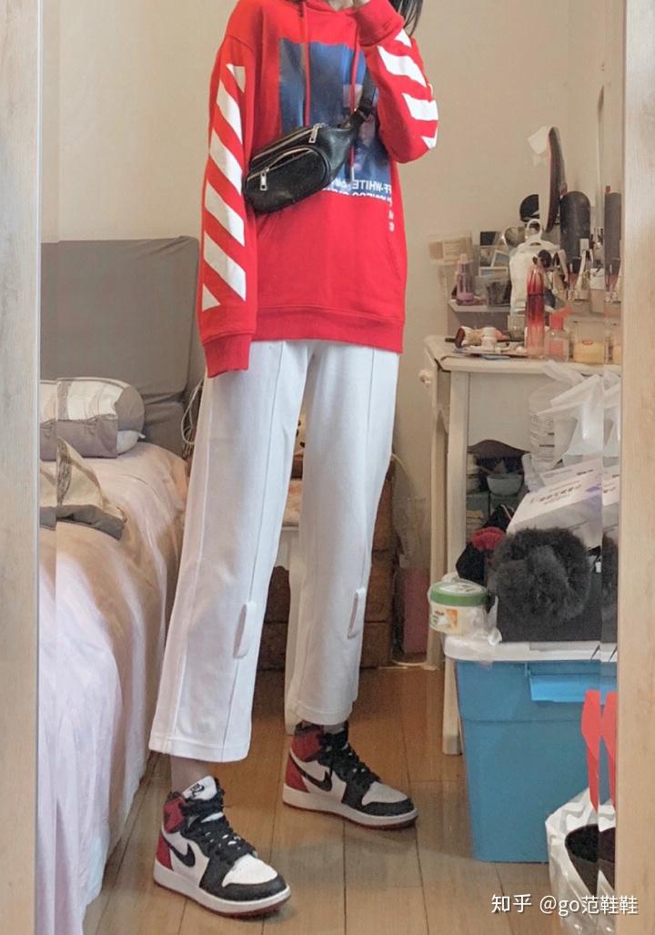 GO范(够范):很多多搭配AJ1都会选择紧身牛仔裤,但其实紧身牛仔裤对腿型不好的女生来说,并不太友好,而宽松的阔腿裤则可以显得腿更直。裤脚微微卷起,潮酷Girl就是你啦。