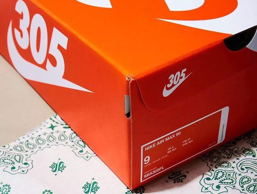 Nike Air Max 90自然也不能错过一年一度的超级碗盛会,本次品牌就发布了一双极其限量的「305」主题配色。鞋身采用墨绿色呈现,在细节处辅以橙色进行点缀。除此之外,鞋舌上以及特殊制作的鞋盒都印有本次举办地迈阿密的区号「305」字样。据悉,该鞋款将在UNKNWN仅限量发售54双,发售形式也十分特别,将会给当日的购物者随机发放。
