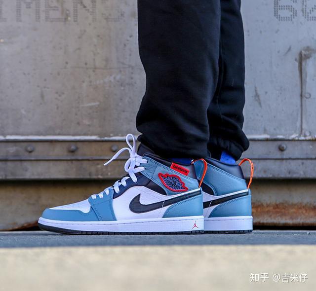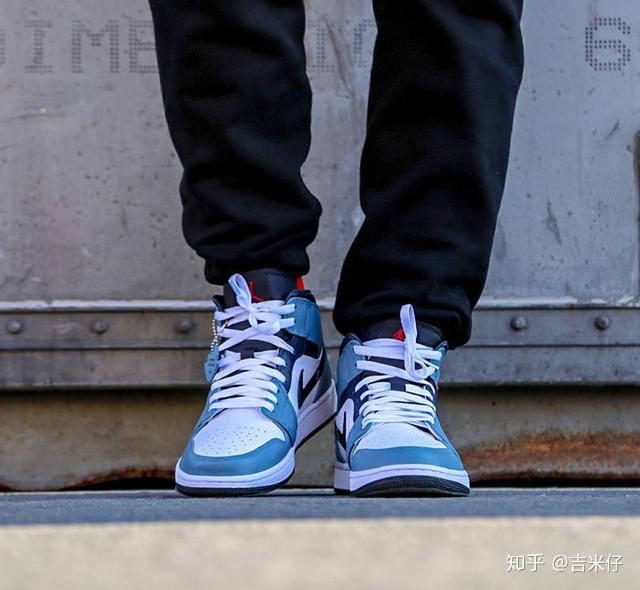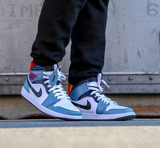 AJ1 白黑蓝 中帮 篮球鞋 CU2802-100,在配色的设计很小众,但是色彩上太小众,让很多人不太喜欢,不怎么好搭配。