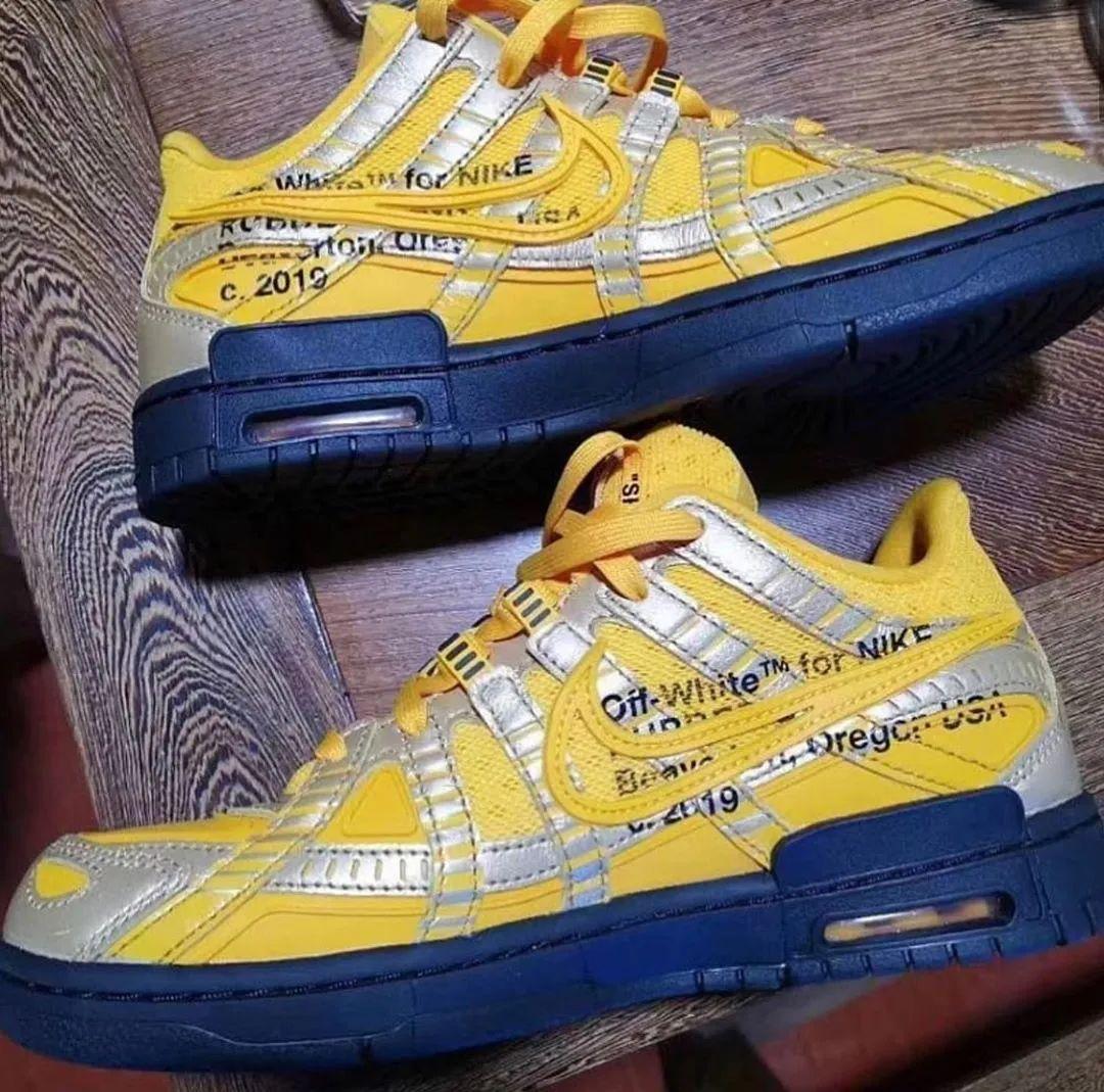 继早前曝光谍照后,今日情报媒体v_stella_magazine为我们释出了黄色版本的Off-White? x Nike Air Rubber Dunk清晰实物图。该鞋款鞋型融合了复古鞋型P-6000的鞋面以及全新设计的气垫开窗Dunk鞋底,鞋身银黄相间的配色呈现吸睛度十足,与此同时内侧亦使用标志性的签名字样诠释身份。目前暂无该鞋款的发售日期公布,请持续关注我们的报道。
