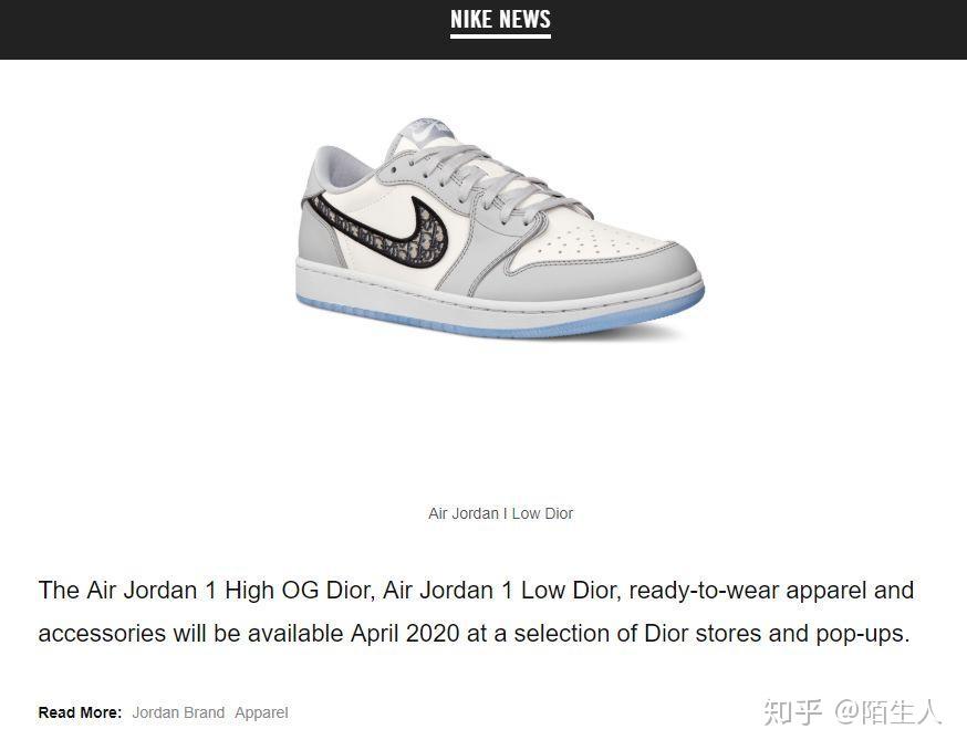 Nike官方已经确认Air Jordan 1 High OG Dior高帮,Air Jordan 1 Low Dior低帮,成衣服装和配饰将于2020年4月在Dior的部分商店和快闪店上市。似乎言外之意便是Jordan官方可能取消了。