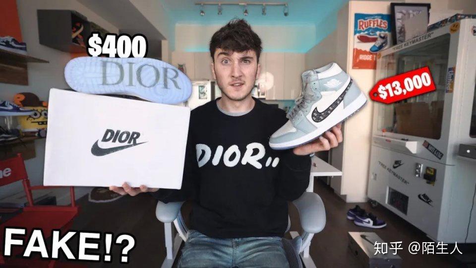 不过最近一段时间里,最火的时期的可能是一位Youtuber开启的恶搞系列,将一双Dior x AJ1假货尝试卖个回收鞋款的球鞋店铺、服装店铺。