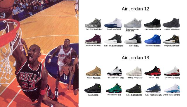 经典配色:"禁穿"(黑红)、“扣碎”(黑橙)、芝加哥(红白)、北卡蓝、黑/红脚趾