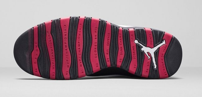 球鞋介绍:Air Jordan 10首次使用了phylon中底来降低重量,3/4掌AIR SOLE提供坚实缓震。10代是一款以纪念为主的球鞋,球鞋外底设计师用文字记录了乔丹自1985到1994这十年间取得的成就和荣誉。在乔丹复出之前,NIKE先期投放市场的乔10只有3个颜色,白/灰、黑和白/天蓝。乔丹复出后又马上推出了5款都市限定款,包括纽约、芝加哥、西雅图、奥兰多、萨克拉门托等著名城市的主题色彩。