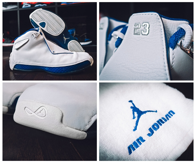 球鞋介绍:如果说17代表现了乔丹的王者风范和贵族气质。那么18代则诠释了一个40岁男人的成熟和睿智。18代是AJ系列产品中首款采用一体式鞋面的篮球鞋,从兰博基尼跑车中汲取灵感,使用整块小羊皮覆盖鞋身,并采用隐藏式鞋带系统,鞋舌顶部与鞋面整皮用强力磁铁吸附,确保鞋身整体的美观整洁;全掌ZOOM气垫,加入了一款Air-Sole unit气垫在后跟处,形成了独一无二的双缓震系统,支撑性能十分强悍。